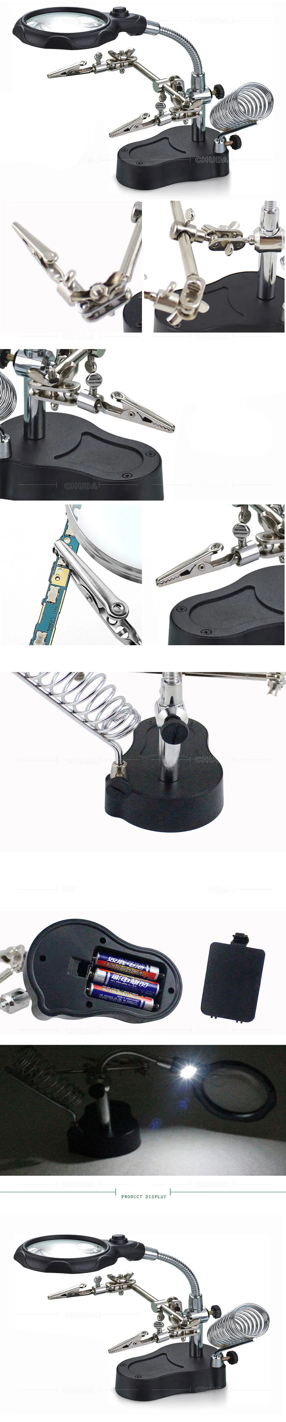 Светодиодный светильник источник Многофункциональный Вспомогательный зажим увеличительное стекло двойное зеркало инструмент ремонт зажим Лупа