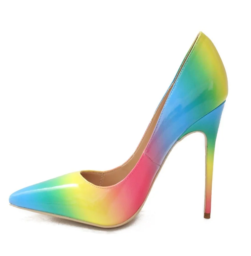 real photo rain bow colorful pointed woman high heel dress shoes 12CM heel large...