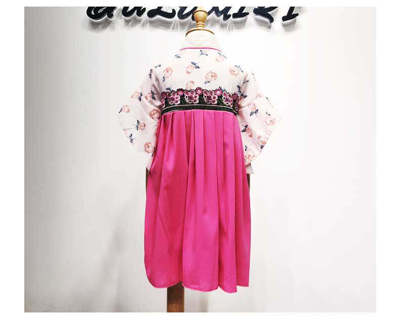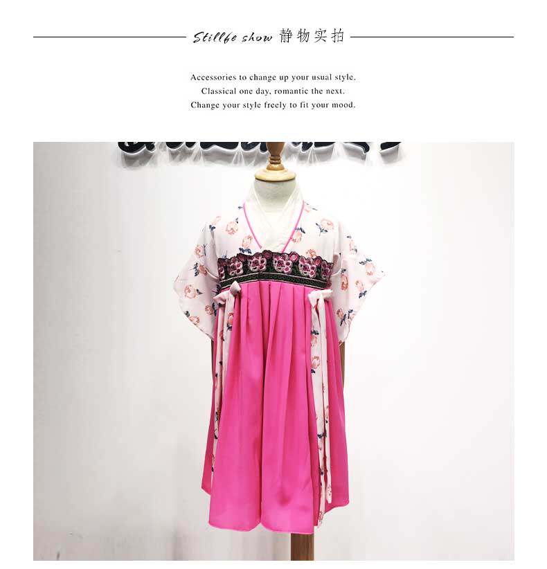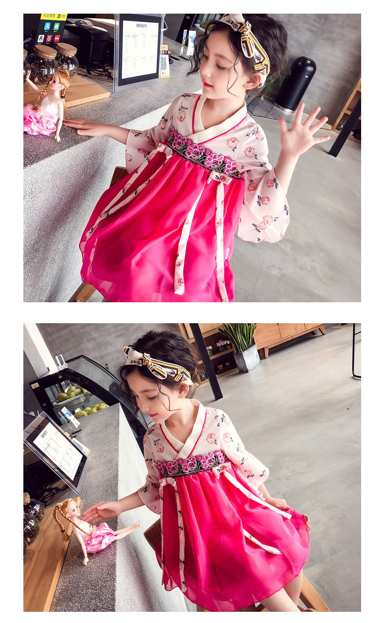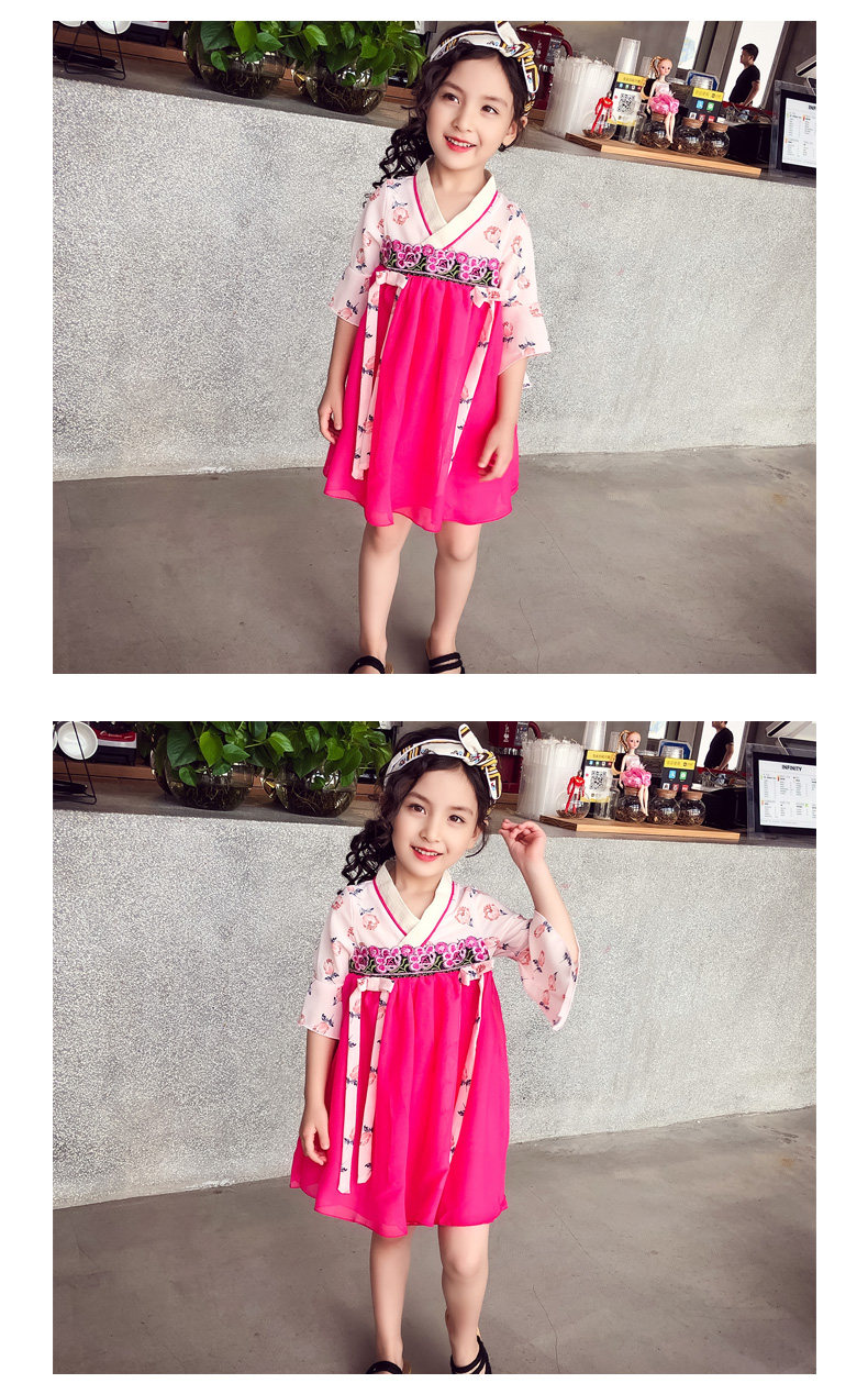 Современная одежда для девочек в китайском стиле, розовое платье Ципао с v-образным вырезом и расклешенными рукавами, Летнее Детское классическое платье hanfu для девочек