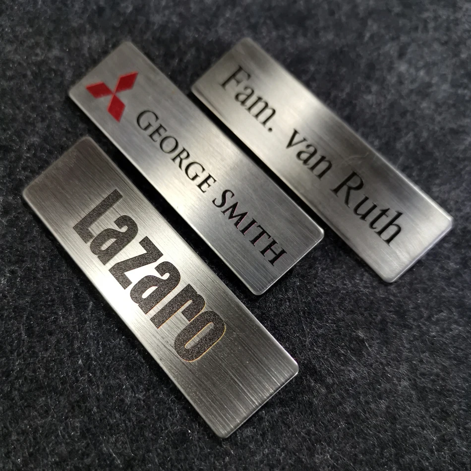 Лазерная гравировка имени Значки из высококачественного внутреннего/наружного материала вывесок Индивидуальные персонализированные почищенные щеткой из нержавеющей стали Именные Бирки с штифтом, логотип с именем, ID значок на заказ выгравированы, 7x2cm Пожалуйста, выберите шрифт Вес нетто: 12 г Материал: Матовая нержавеющая сталь Больше количества будет дешевле!