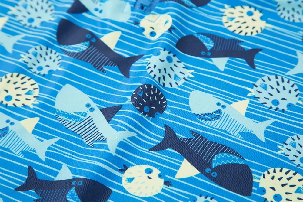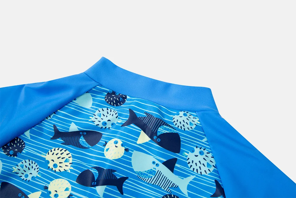 Attraco/цельный купальный костюм для маленьких мальчиков на молнии с принтом рыбы, детский купальный костюм с длинными рукавами и принтом Рашгард UPF 50 + пляжная одежда