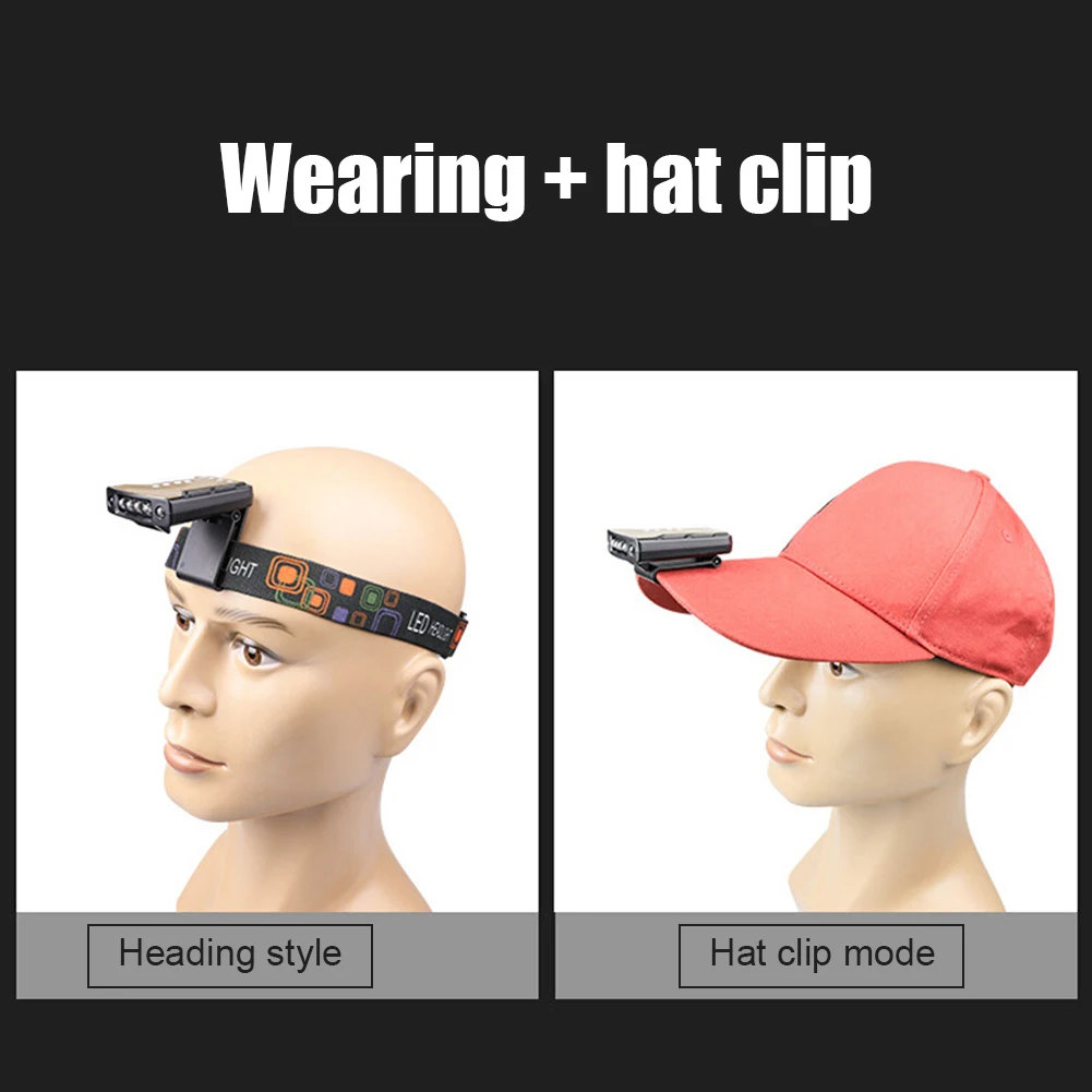 Налобный фонарь, USB светодиодный перезаряжаемый светильник, датчик движения тела, Регулируемая лампа, колпачок, водонепроницаемый, 800 мА · ч