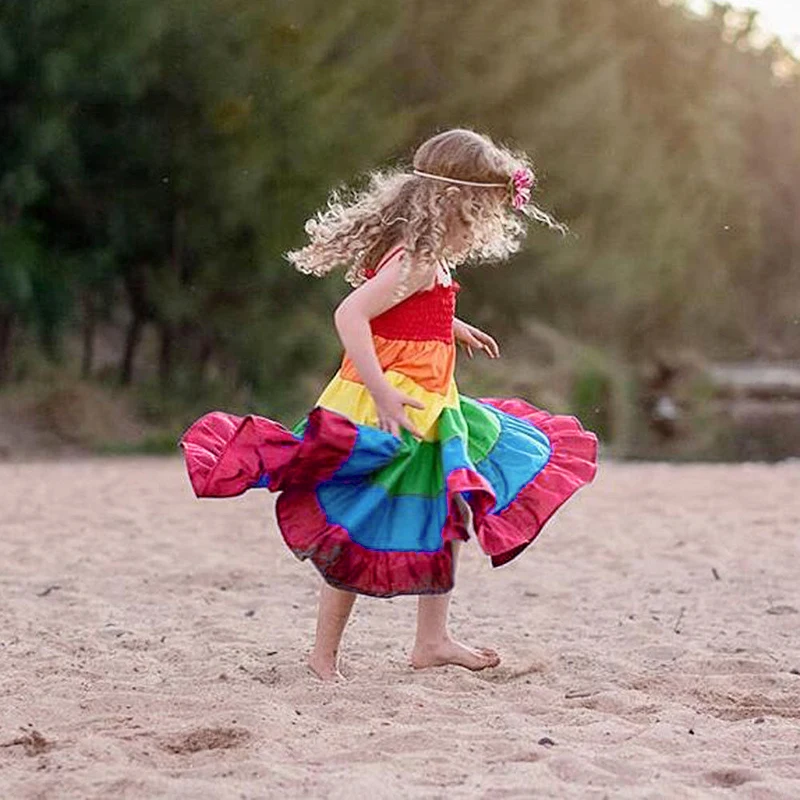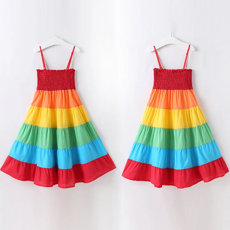 * Описание товара: Летнее пляжное платье на бретельках для маленьких девочек, радужных цветов