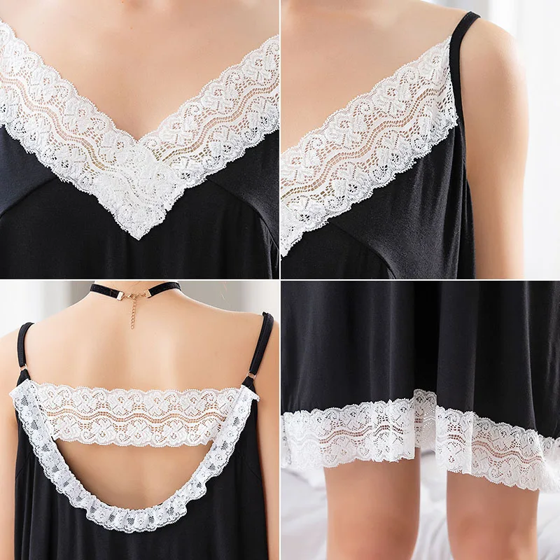 Женские ночные рубашки, хлопковое Ночное платье, сексуальное, Sphagetti, на бретелях, с v-образным вырезом, кружевное, повседневное, домашнее платье, 4XL 5XL, ночная рубашка, одежда для сна