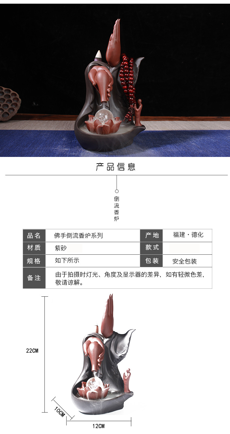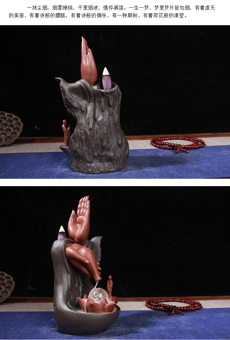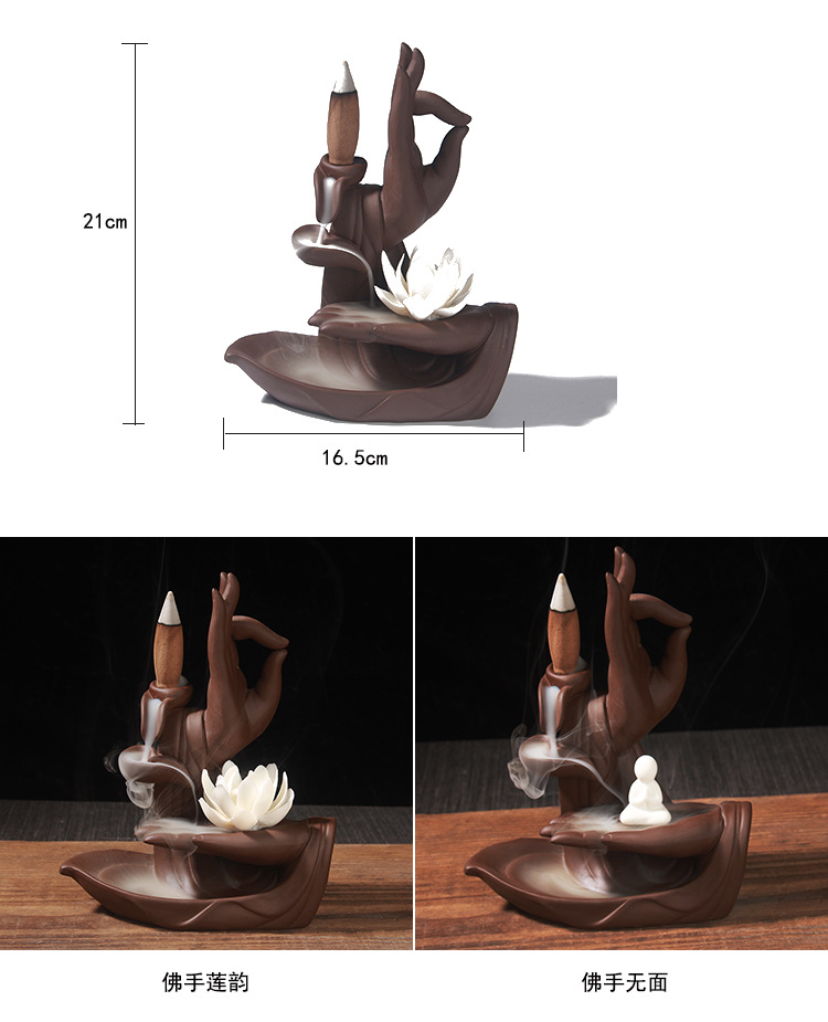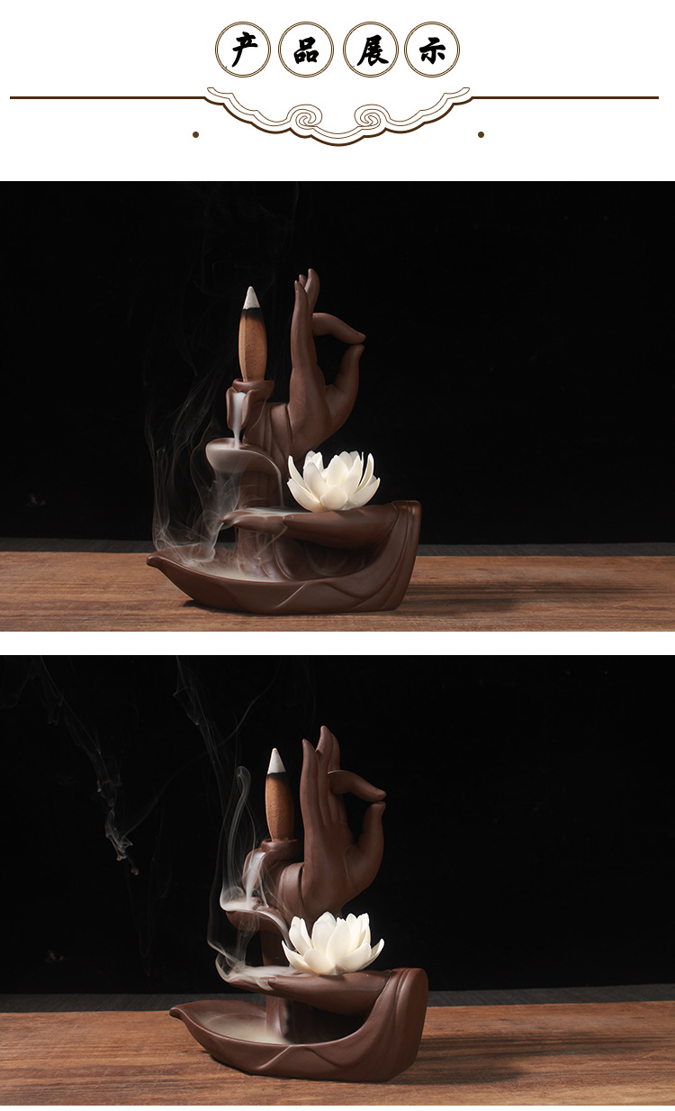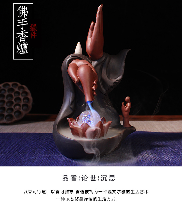 10 шт конусов + Zen фиолетовый песок благовония горелка с Буддой ручной обратного потока благовония горелка для благовоний в виде лотоса благовония горелка буддизм украшение