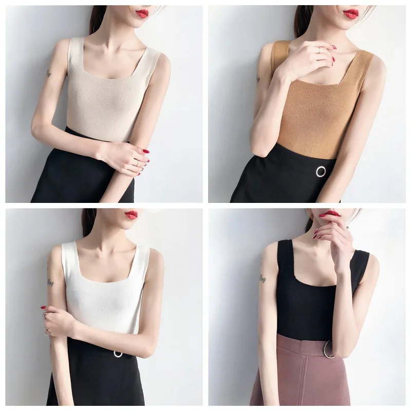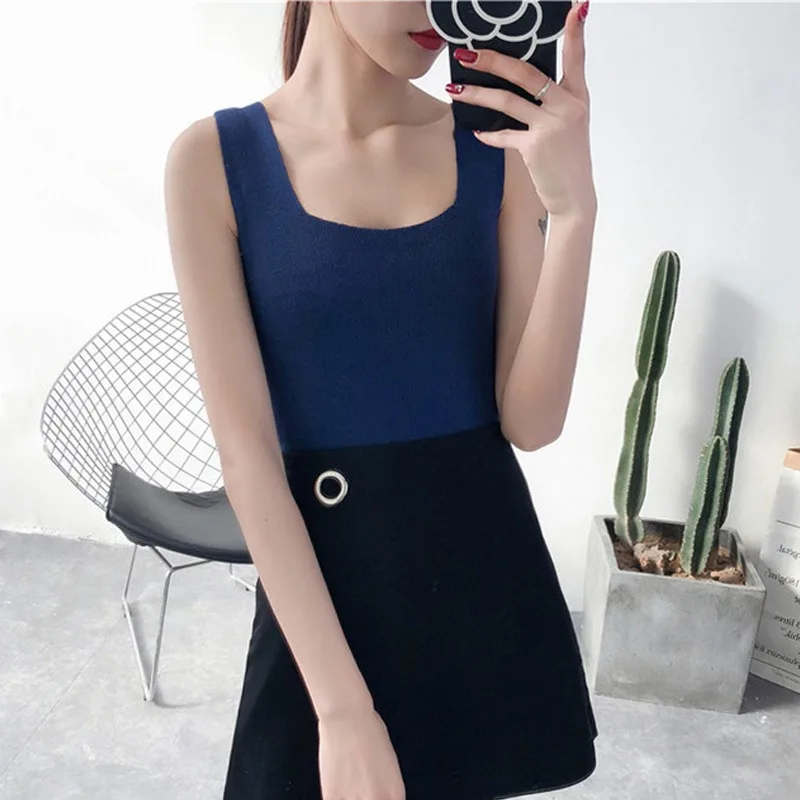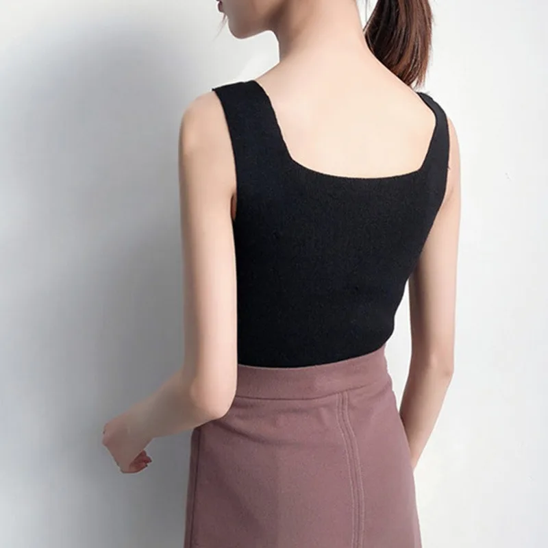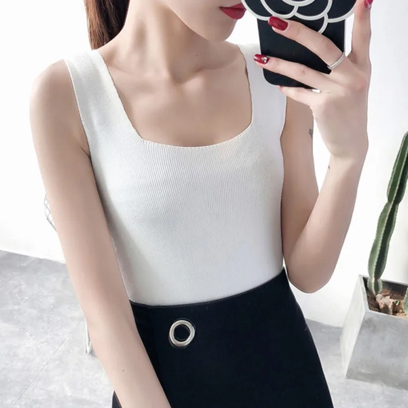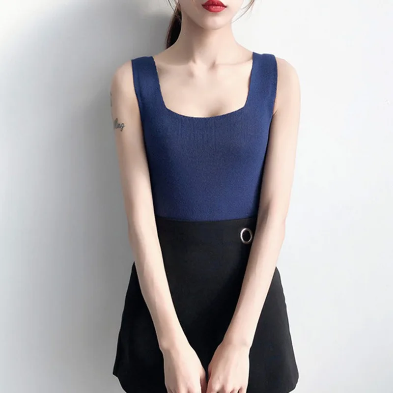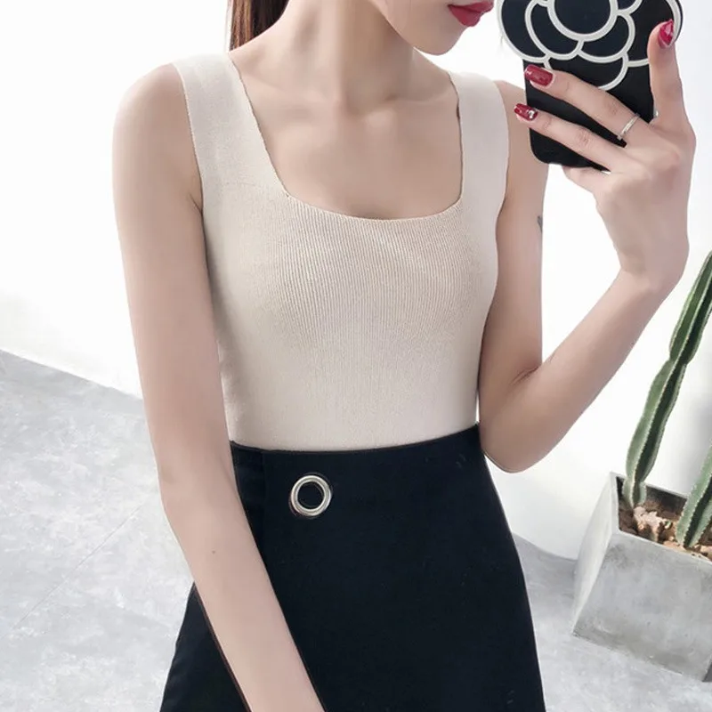 2. Базовая однотонная Трикотажная майка без рукавов с квадратным вырезом модный сексуальный и повседневный дизайн сделает вас расслабленной и уютной.