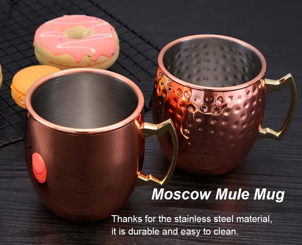 BORREY Stainless Steel Coffee Mug Tea Cup Moscow Mule Copper Mugs Hammered Copper Plated Beer Cocktail Mug Bar Bartender Tools