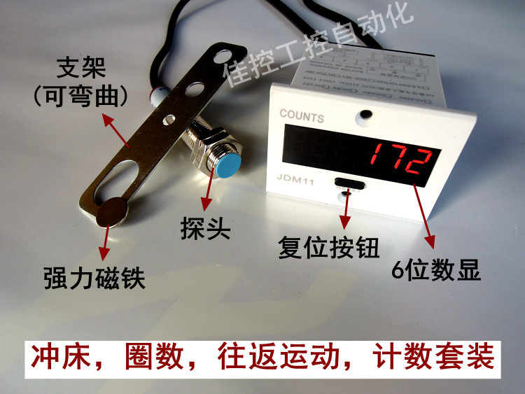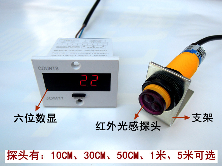 Product Name: Digital Display Pipe Counter Detector detection distance: 10cm, 30cm, 50CM, 70cm, 1m, 5m, 10m, optional; Special meter for metal, special counting for punch Counting digits: six digits Counting range: 0-999999 Power supply: ≤ 2W Counting speed: 10 (times / second) Working voltage: 220V (default) Need 12V~110V please leave a message Opening size: 25mm*50mm Features: high sensitivity, with power-off memory function, data can be saved for 10 years, high-brightness LED display, can also see the count at night