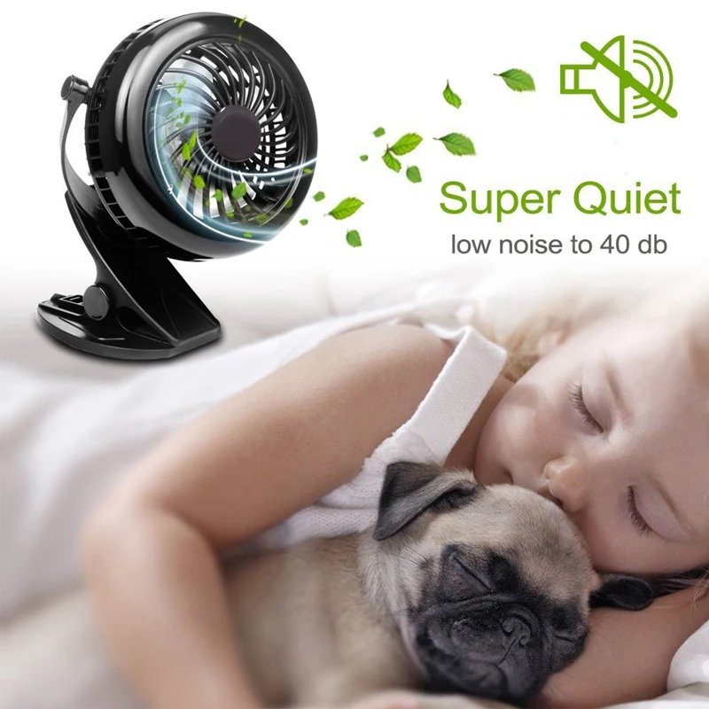 Enhanced Clamp offers the best clip fan. We have tested the fan to ensure the clamp is strong enough to clip and stay put; Easily attach the USB fan to anything having a ledge, like a table, chair,bedside, treadmill, baby stroller, and so on.
