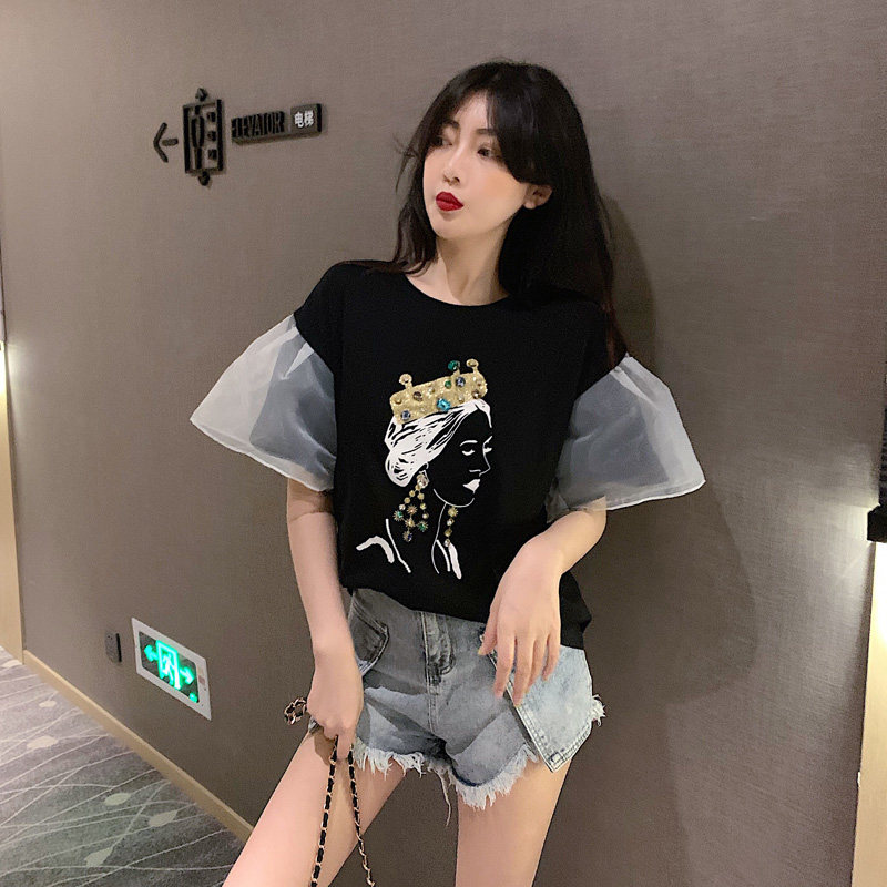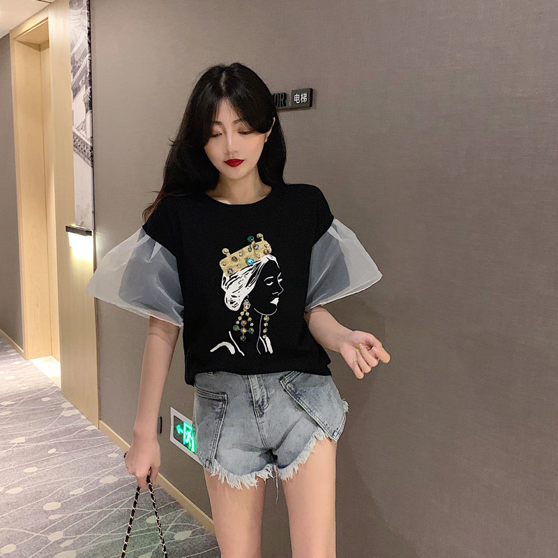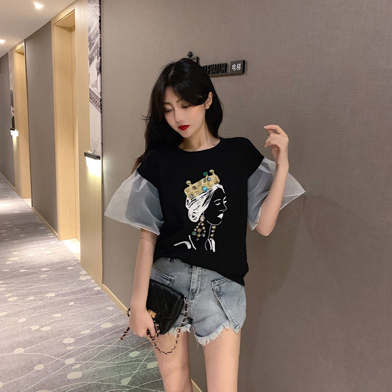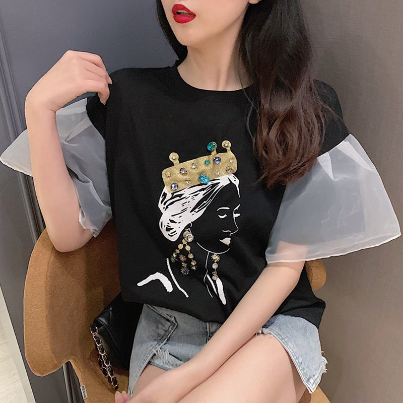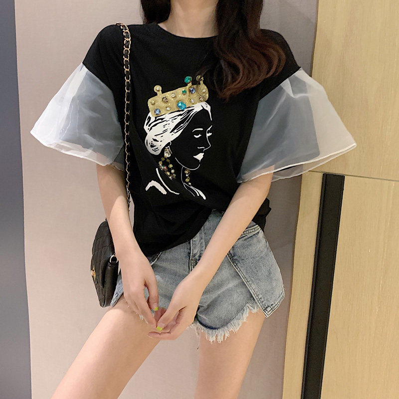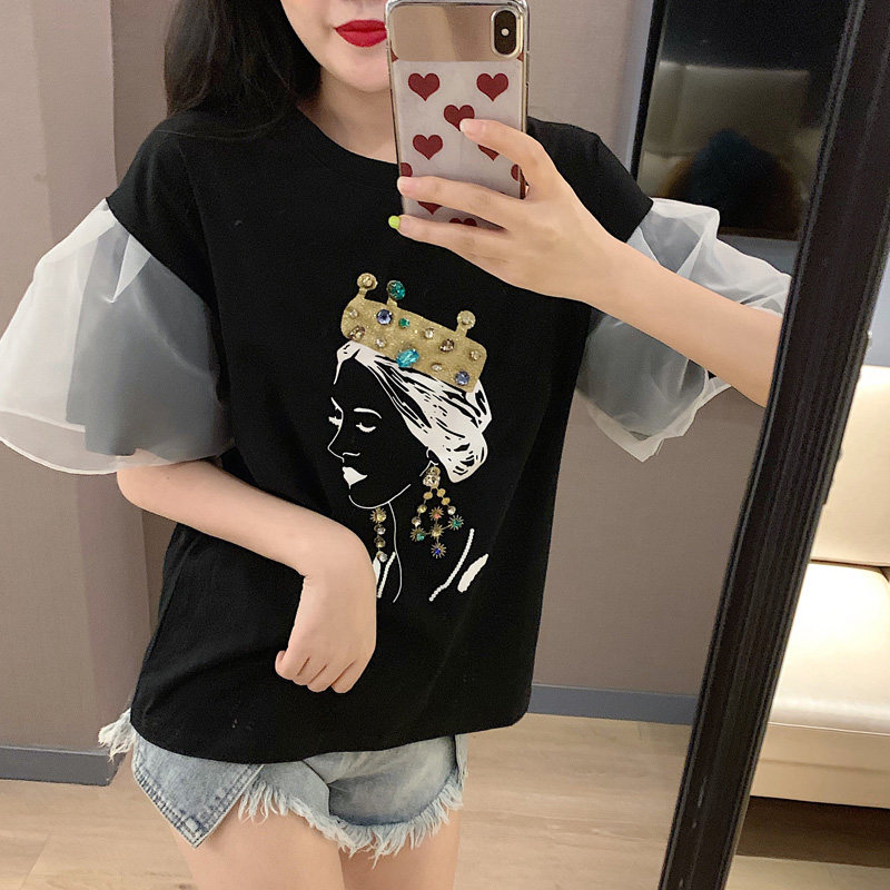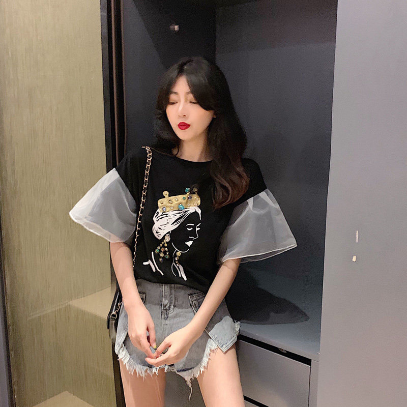 2 цвета, летние топы 2019, свободные футболки с короткими рукавами в Корейском стиле с мультяшным принтом в стиле пэчворк, женская футболка, femme