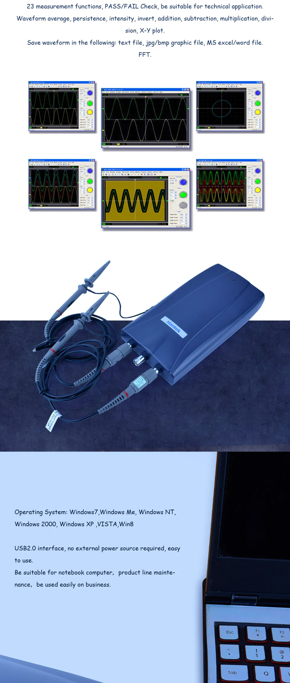Hantek DSO-2150 2 канала цифровой осциллограф 60 МГц полоса пропускания 2CH PC USB осциллограф 150MSa/s 23 функции