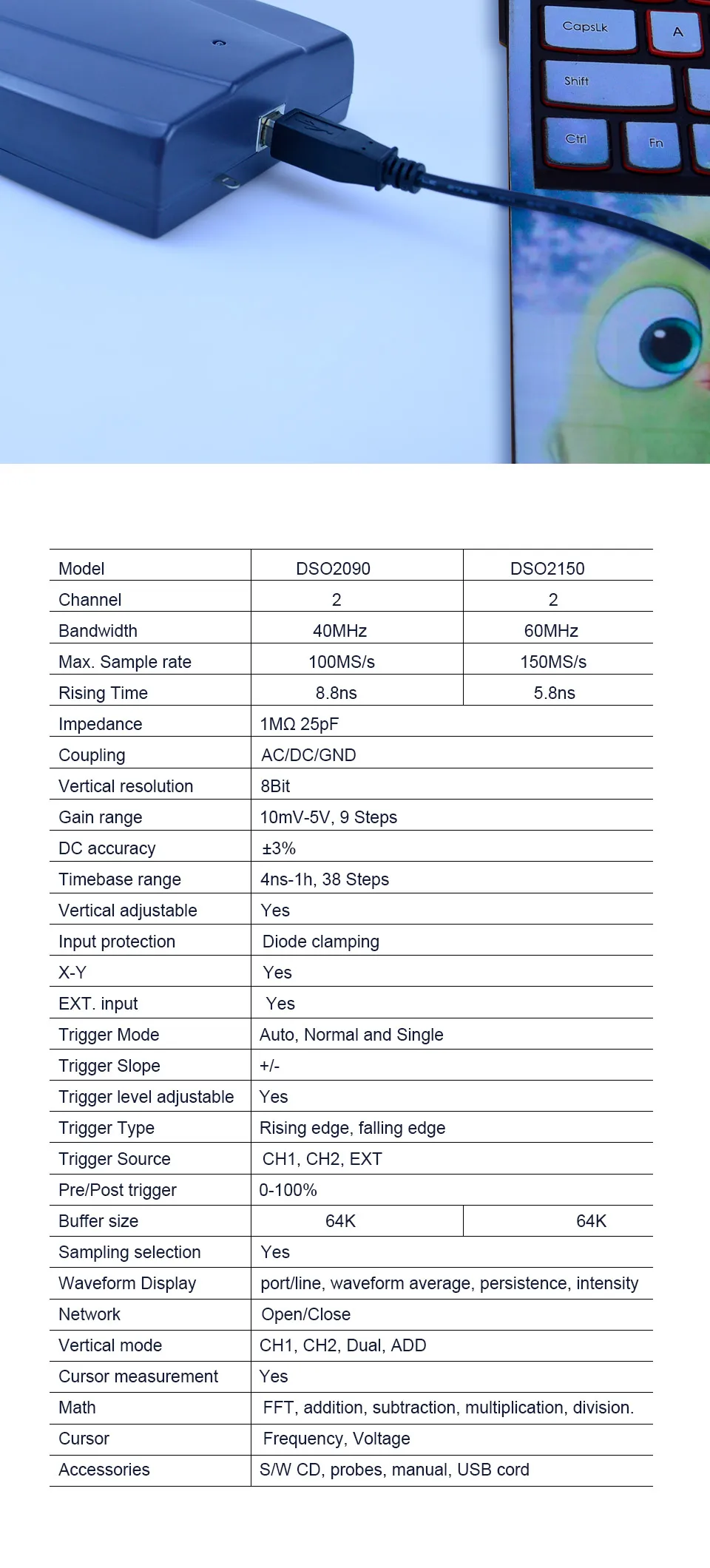 | Аксессуары | S/W CD, зонды, руководство, USB шнур |