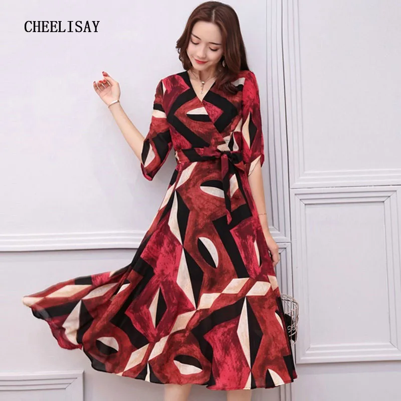 Женское пляжное платье с геометрическим принтом, элегантное праздничное платье с поясом, размер XXXL, лето 2019