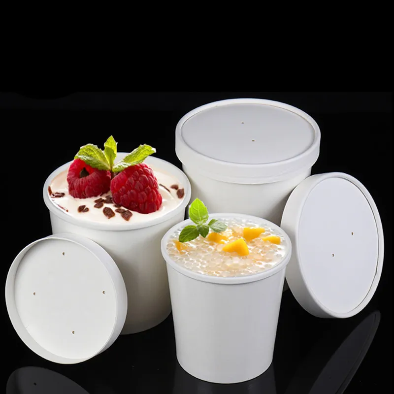 50 шт., белая плотная крафт-бумага, ведро для супа, Одноразовая чашка для супа, коробка для ланча, миска для еды на вынос, упаковка для салата, круглая чашка с крышкой