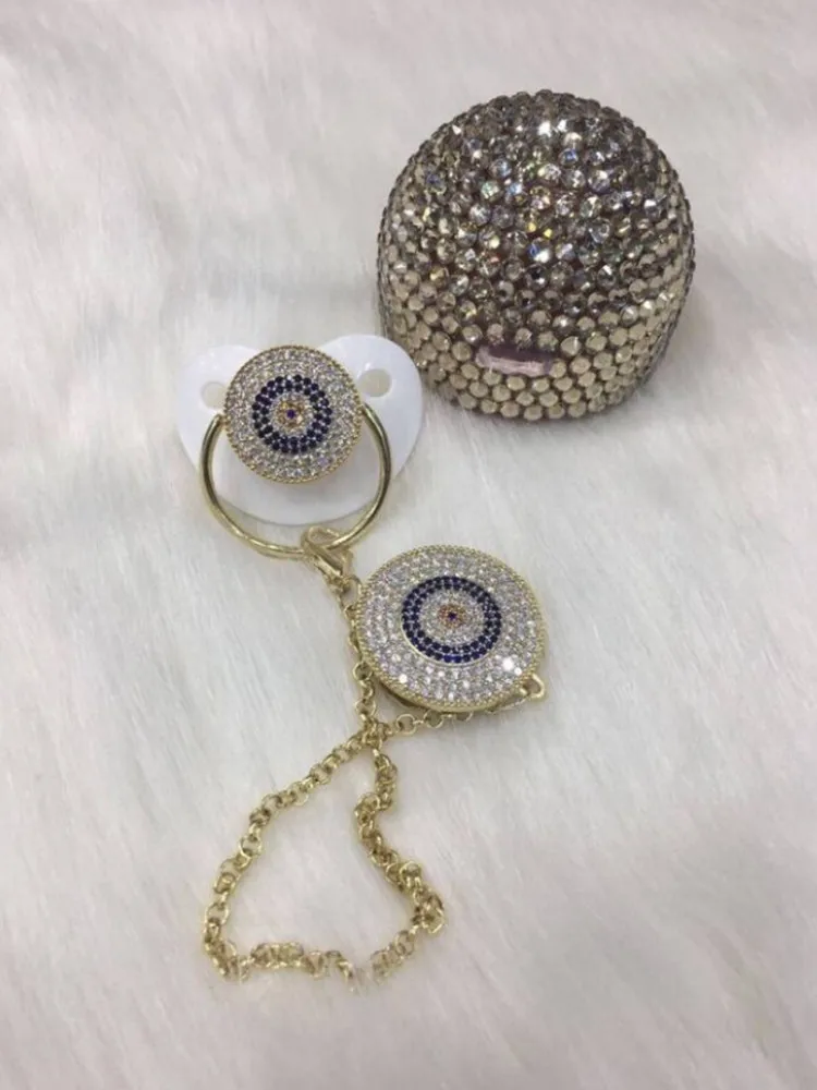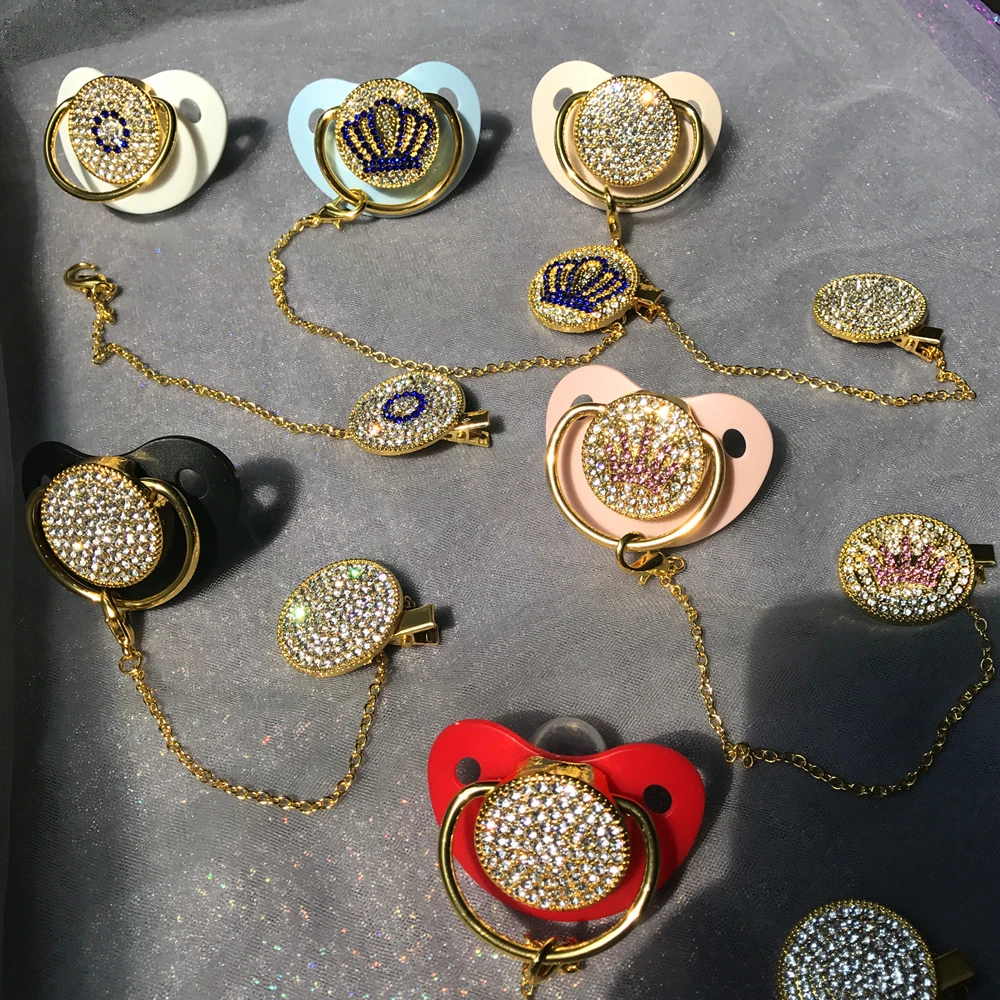Кукольная цепочка-пустышка для новорожденных, роскошная Алмазная инкрустация синим бриллиантом, оригинальная Золотая цепочка, зажим для соски
