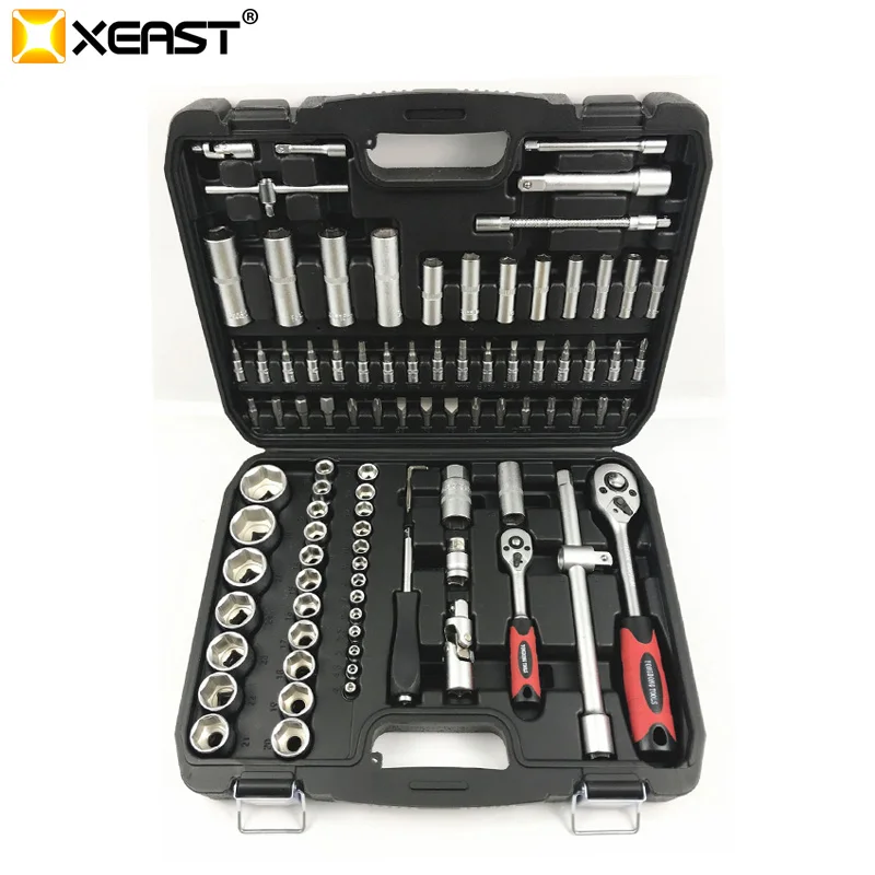 Набор торцевых ключей XEAST 94 шт., набор инструментов для ремонта автомобиля, трещотка, динамометрический ключ, набор ключей, хром-ванадиевый ключ