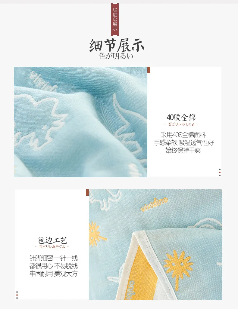 Особенности: 1. 100% хлопок, безопасный материал, не вредит ребенку 2, уход за кожей мягкий удобный, антисталевый, без Azo и низкий кадмий, низкий углерод 3, высокая абсорбируемость воды 4. В магазине, быстрая доставка, высокое качество, лучший сервис 5. Официальный уполномоченный дистрибьютор бренда Tado muslin, страхование качества Спецификация: 1, размер: 90*100 см (после растяжения) 2. Ткань: 100% муслиновый хлопок 3. Пряжа: 40s 4. Слой: 6 слоев s марли 5. Печать: печать покрытия 6. Стиль марли: скрученная пряжа 7, Вес: около 0,32 кг