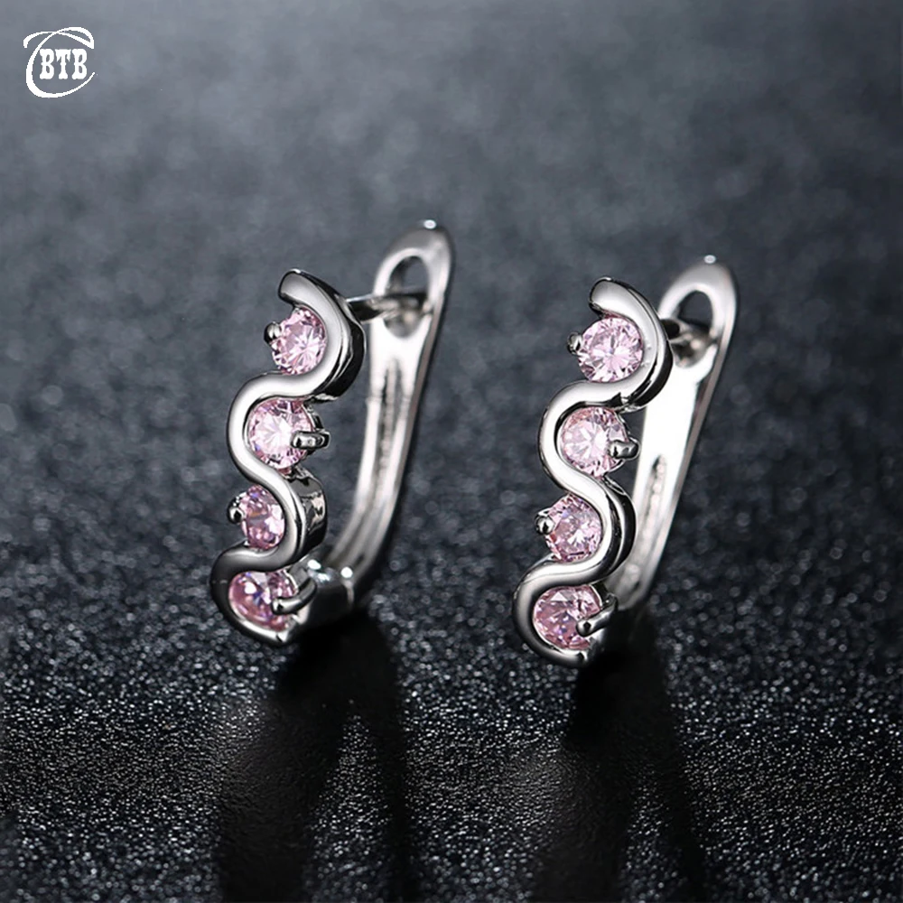 Брендовые 7 цветов s 585 серебряные серьги с большими розовыми кристаллами циркония серьги с микро покрытием белые серьги-кольца с фианитами Роскошные ювелирные изделия женские подарки