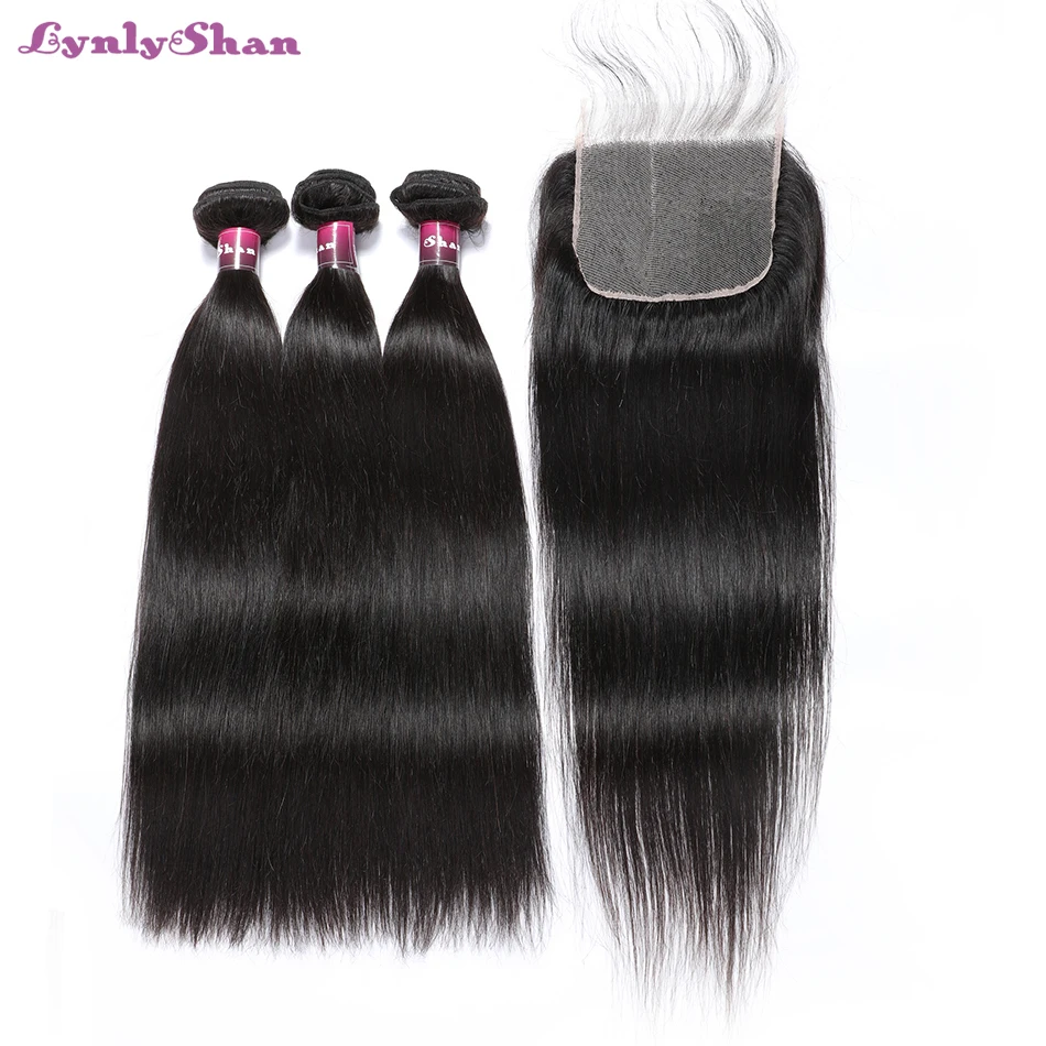 Малазийские прямые пучки волос с закрытием шнурка натуральные человеческие