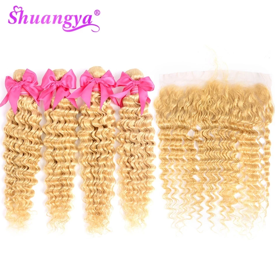 Бразильские глубокая волна пучки с фронтальной медовый блонд пучки с фронтальной 613 пучки с фронтальной Remy фронтальная с пучками