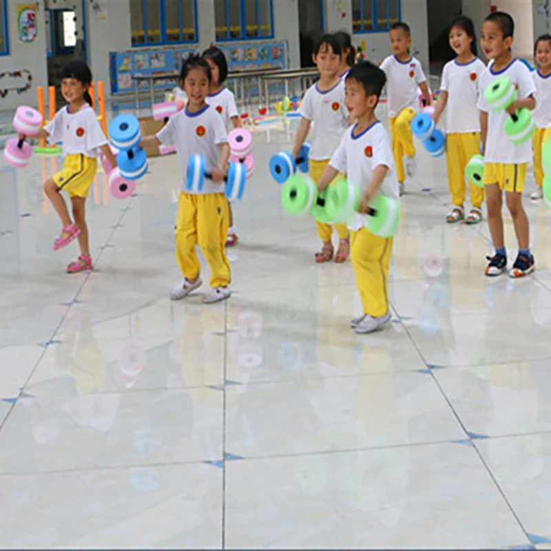 Круглый пенопласт на каждом конце гантели делают их более стойкими для занятий плаванием.