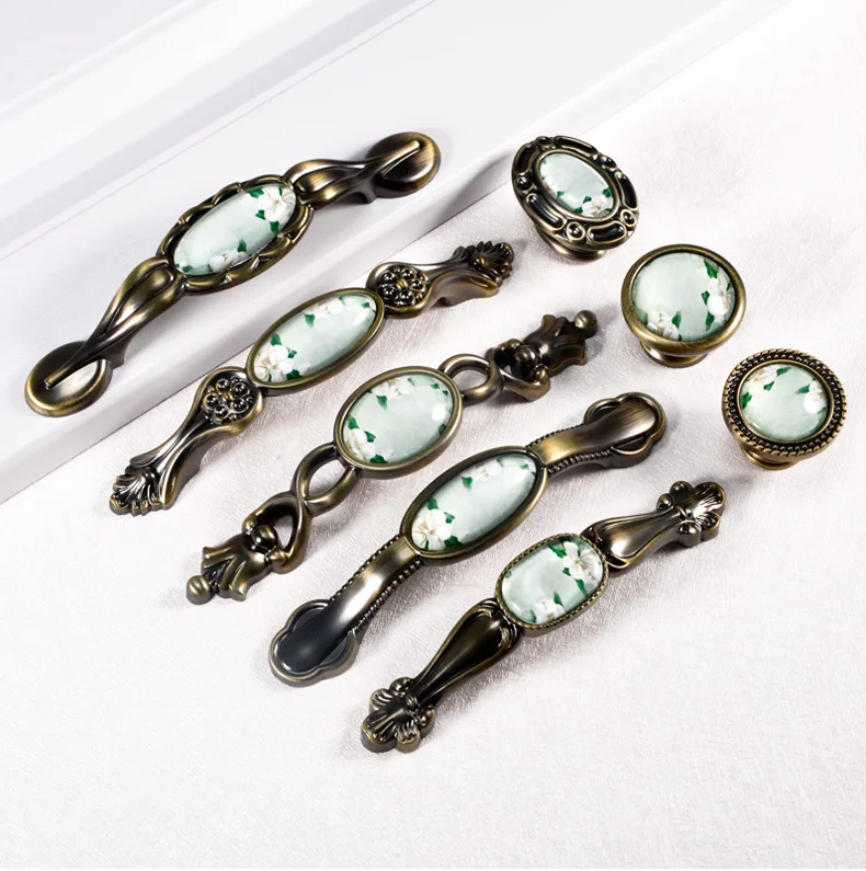 Винтажная модная хрустальная мебель ручки 110 мм Бронзовый комод кухонный шкаф тянет античная латунь красный зеленый белый ящик ручки