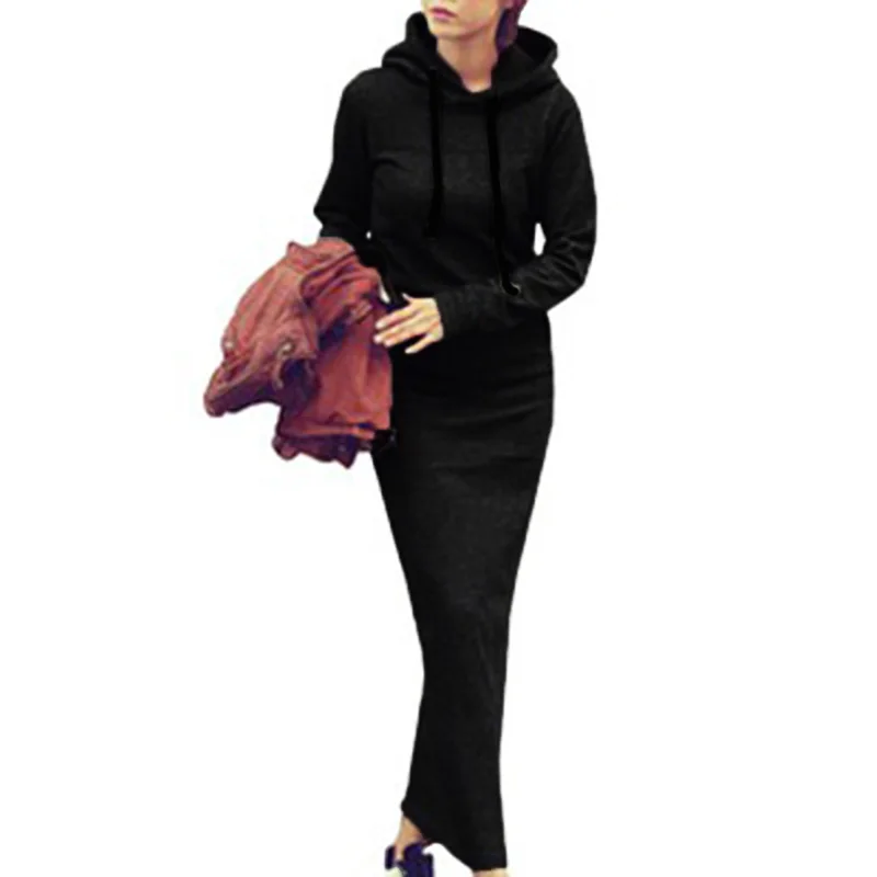 * Описание товара: женское платье с длинным рукавом на осень и зиму, Повседневный свитер, платье с капюшоном