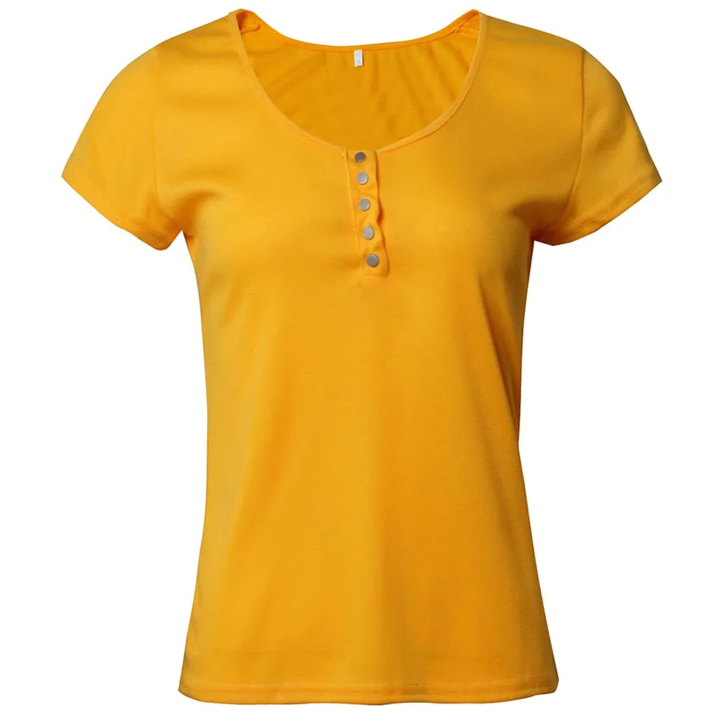 Женские футболки с v-образным вырезом на пуговицах с коротким рукавом