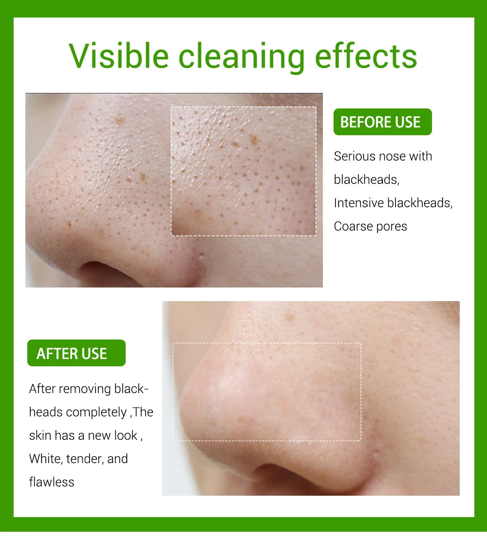 Видимые очищающие эффекты перед использованием серьезных Носочек с углами, интенсивными угреми, грубыми порами после полного удаления черных точек, кожа имеет новый вид, белый, нежный и безупречный