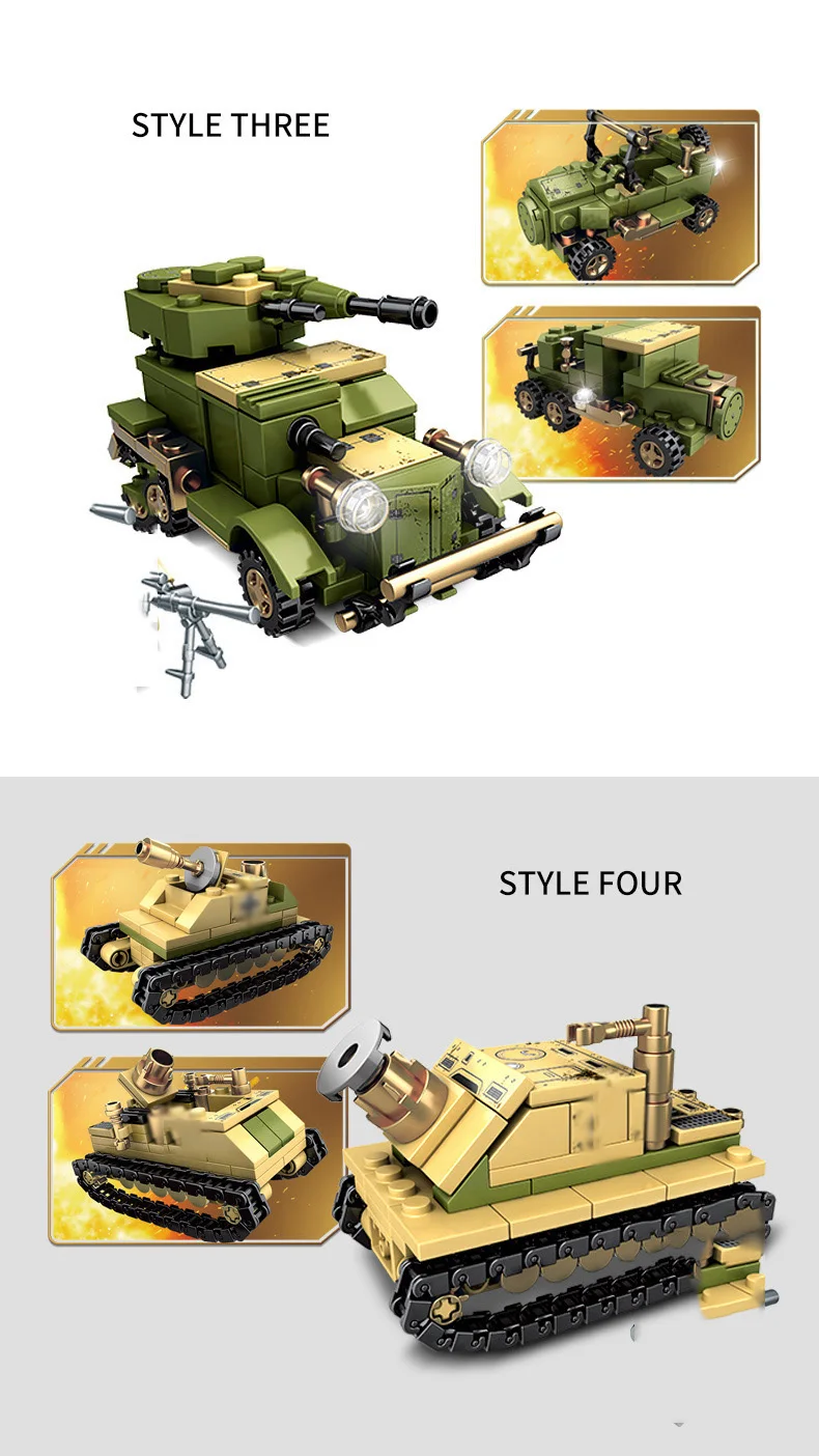 Военные WW2 танковые грузовые автомобили солдатские фигурки строительные блоки городской армии оружие техника кирпичи развивающие игрушки для детей