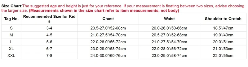 Таблица размеров:Предполагаемый возраст и рост указаны только для справки. Если ваши измерения находятся между двумя размерами, советуем выбрать больший размер.(Измерения, показанные в таблице размеров, относятся к измерениям товара, а не к телу)