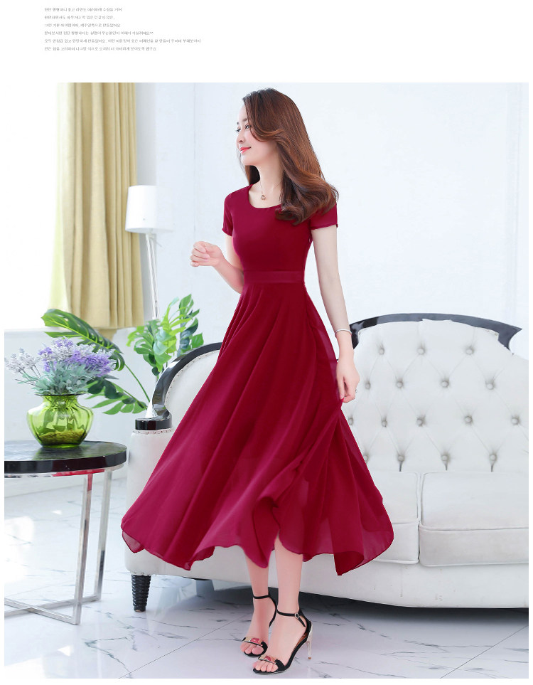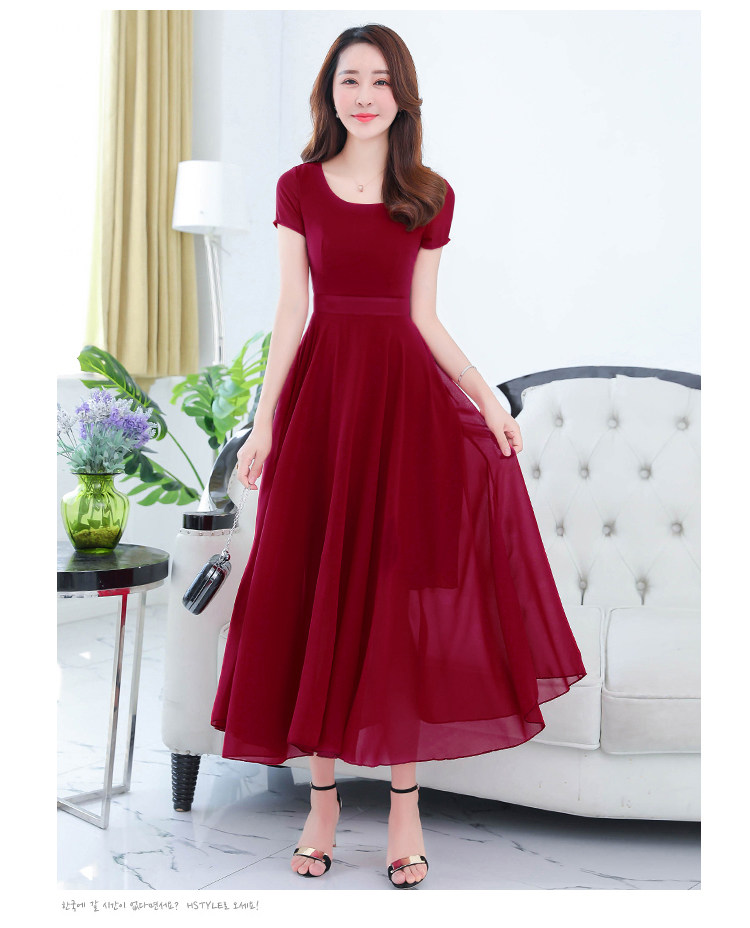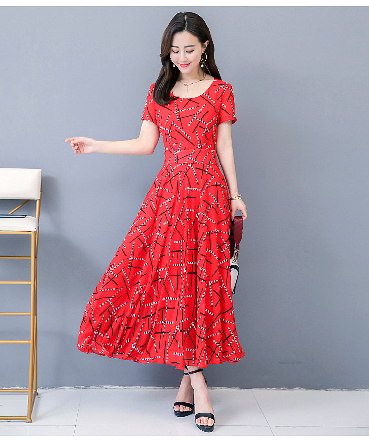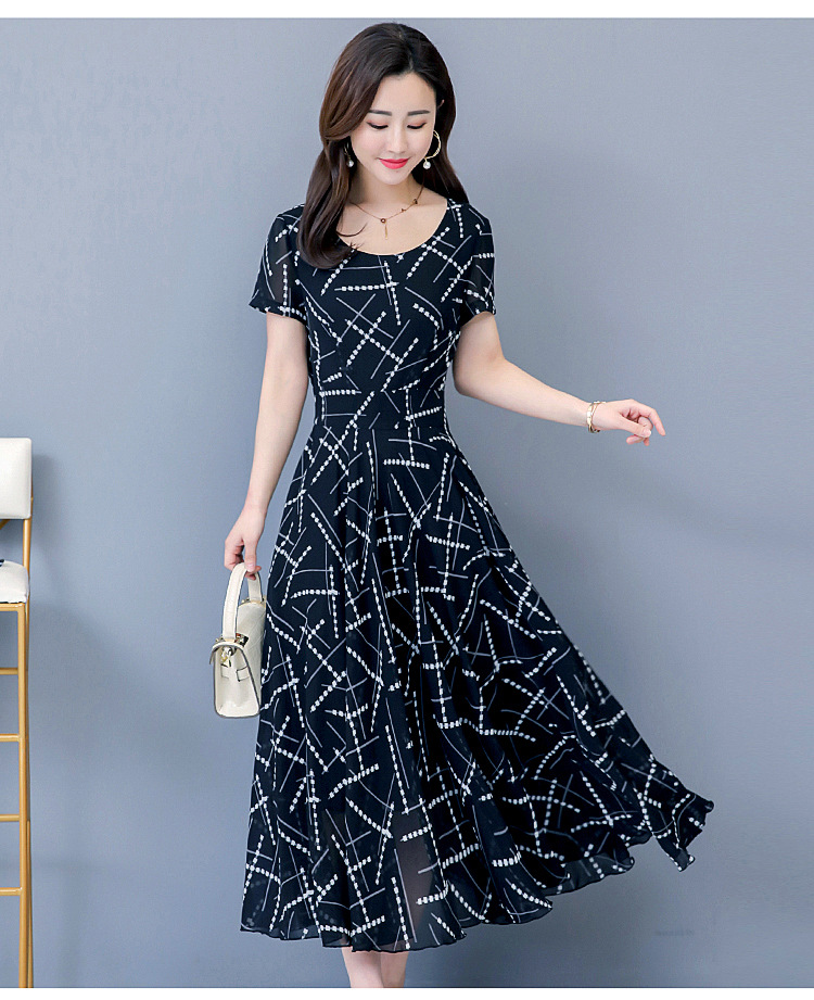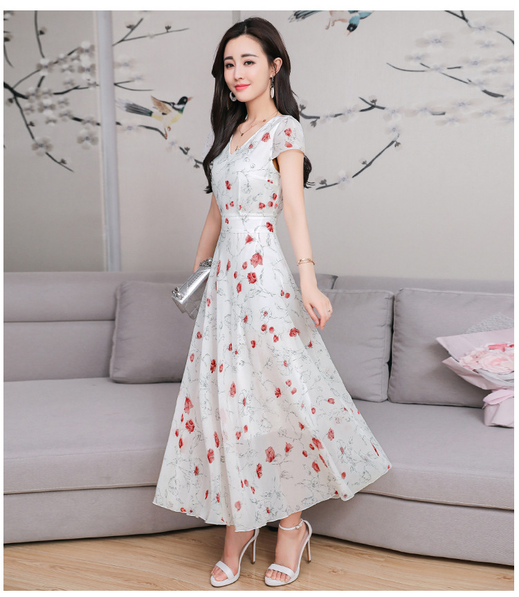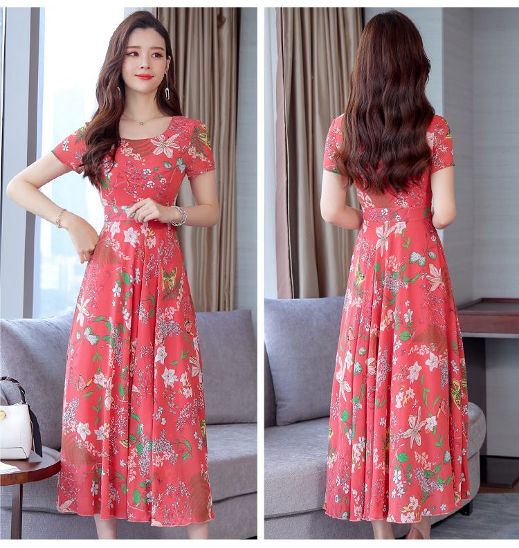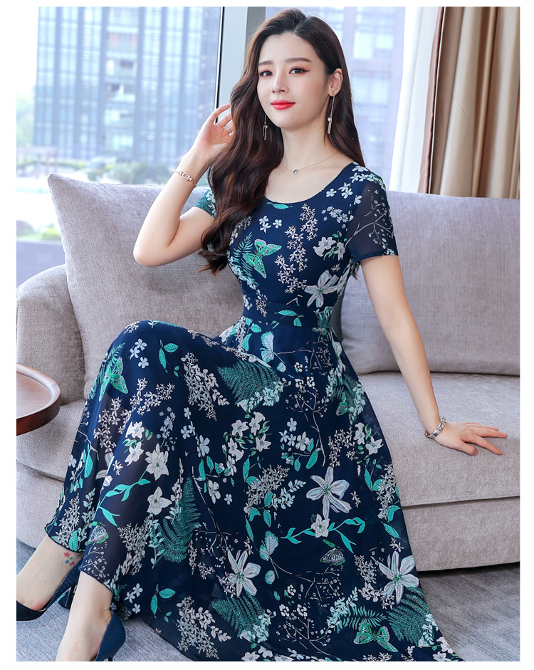 Женское шифоновое платье с коротким рукавом, тонкое длинное платье с цветочным принтом и круглым воротником, лето 2019
