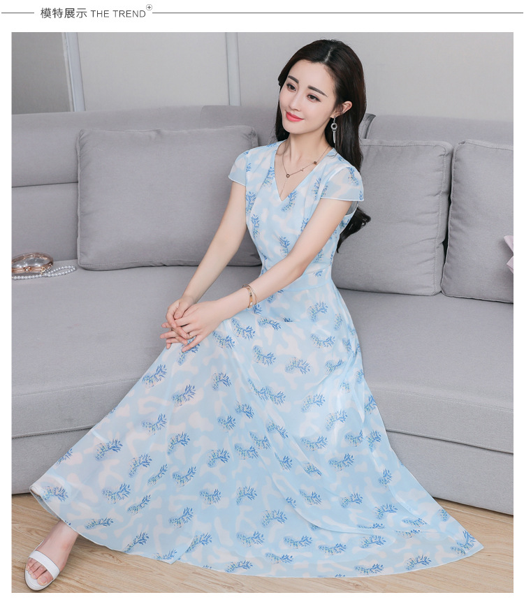 Корейское модное тонкое шифоновое платье, женское платье с v-образным вырезом, весна-лето 2019