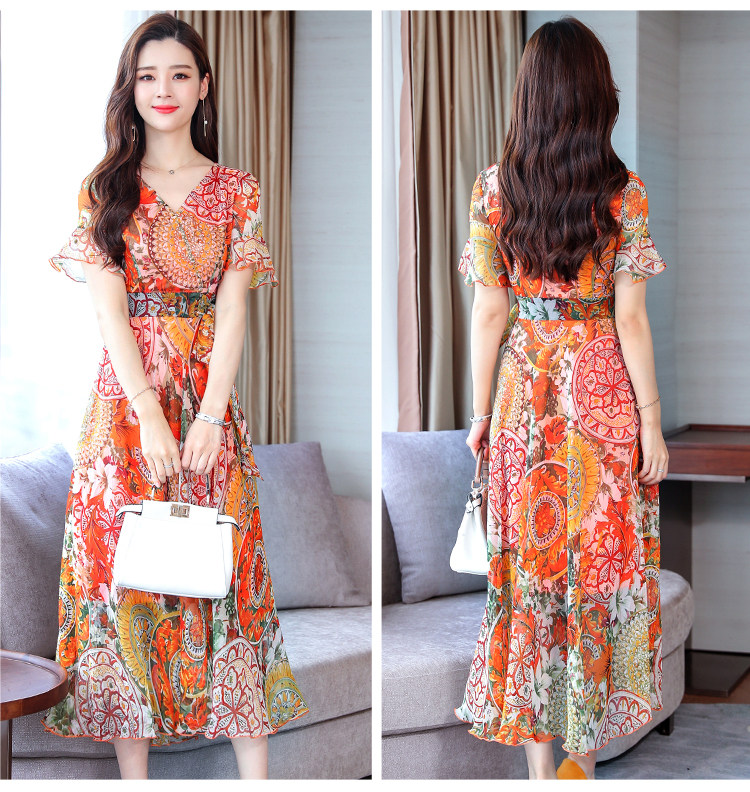 Женское шифоновое платье, длинное платье феи с принтом на талии, лето 2019