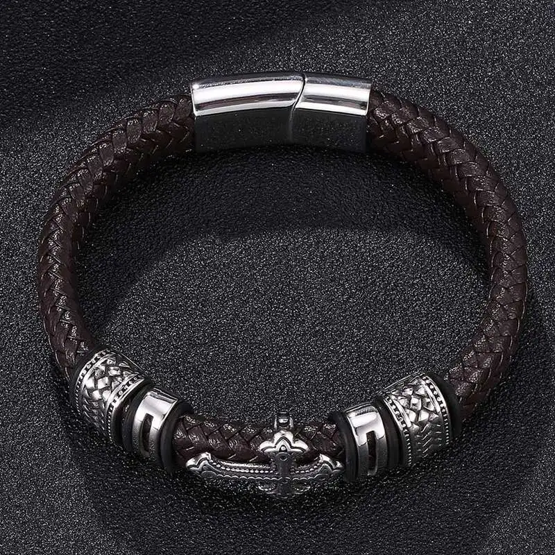 Новые модные мужские ювелирные изделия коричневый плетеный кожаный перекрестный браслет панк нержавеющая сталь Магнитная застежка трендовые браслеты SP0120