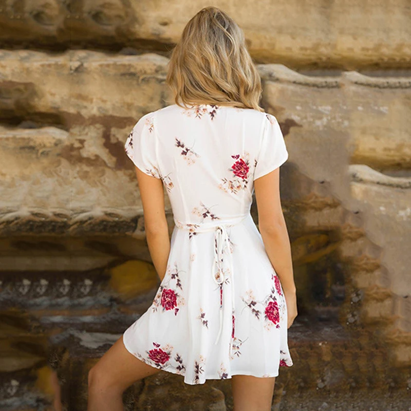 * Описание товара: Летнее женское повседневное Короткое мини-платье с короткими рукавами и v-образным вырезом