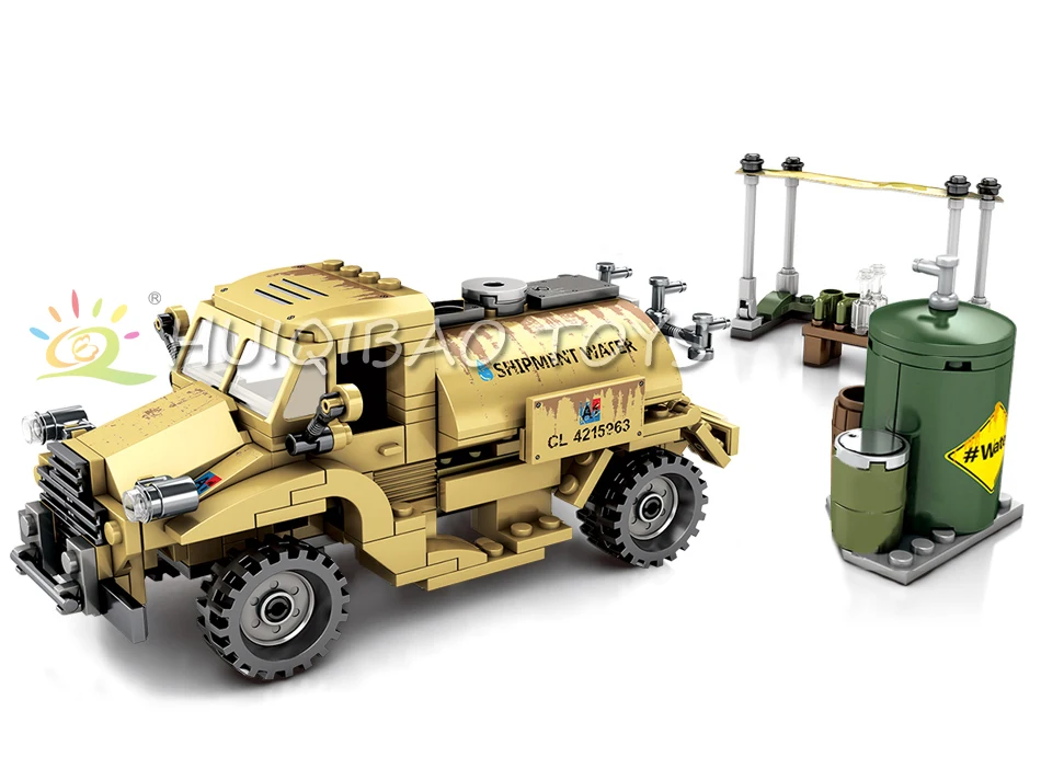 284 шт., военный грузовик с водяным танком, строительные блоки, военный грузовик, автомобиль, фигурки, кирпичи, игрушки для детей