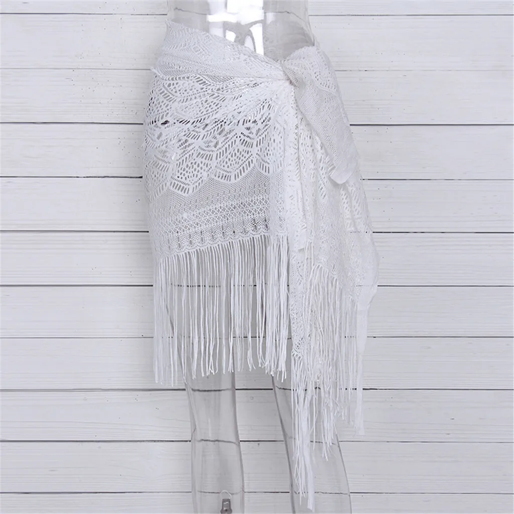 Женский купальник, Пляжная Солнцезащитная блузка, бикини, пляжная шаль, юбка с кисточками