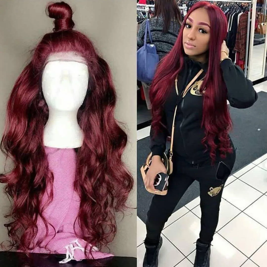 13*6 волнистые 99J цветные кружевные передние человеческие волосы парики черные женские Омбре бордовые кружевные передние парики предварительно выщипанные прямые кружевные передние парики бразильские волосы Remy быстрая доставка