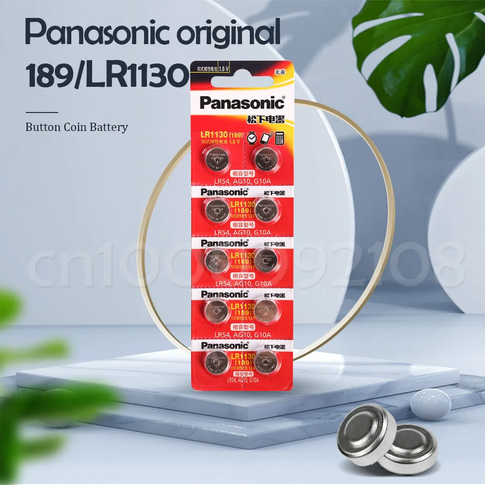 2 шт., щелочные батарейки Panasonic 1,5 в AG10 LR1130 AG10 389 LR54 SR54 SR1130W 189 LR1130, кнопочные батарейки для монет