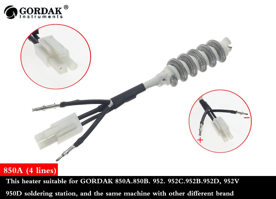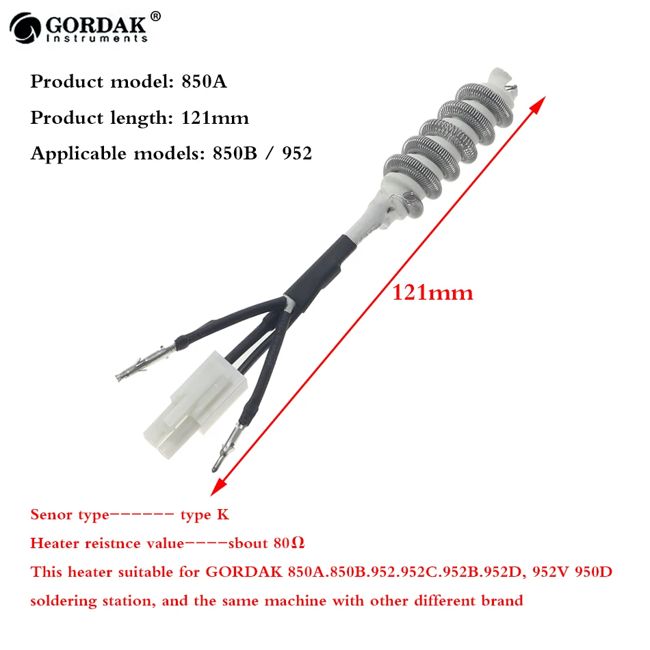 Примечание: Gordak 850A нагревательный элемент подходит для продуктов серии Gordak 850A, 850B, 952, 952B, 952C, 952D, 952V, 950D и других станций для удаления горячего воздуха с постоянной температурой, И другие бренды того же типа машинного оборудования, замена нагревательного сердечника.