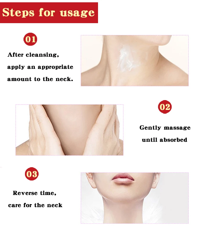 Увлажняющая текстура, хорошая пластичность, легкая мягкая кожа шеи, содержит эссенцию масла ши, со свежим и легким ароматом, чтобы увлажнить кожу, улучшить сухую, водную кожу шеи, разбавьте небольшое декольте, благодаря чему кожа увлажнена и гладкая, а сияющая и гладкая Шея видна.