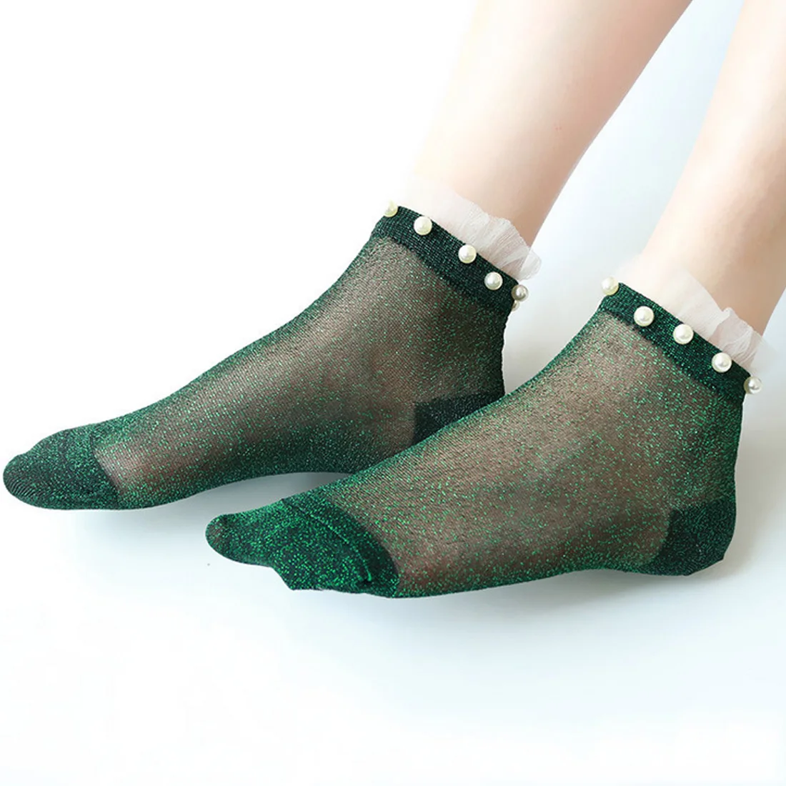 1. Ультратонкие носки с искусственным жемчугом, милые и шикарные.