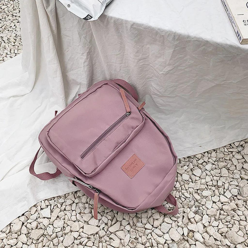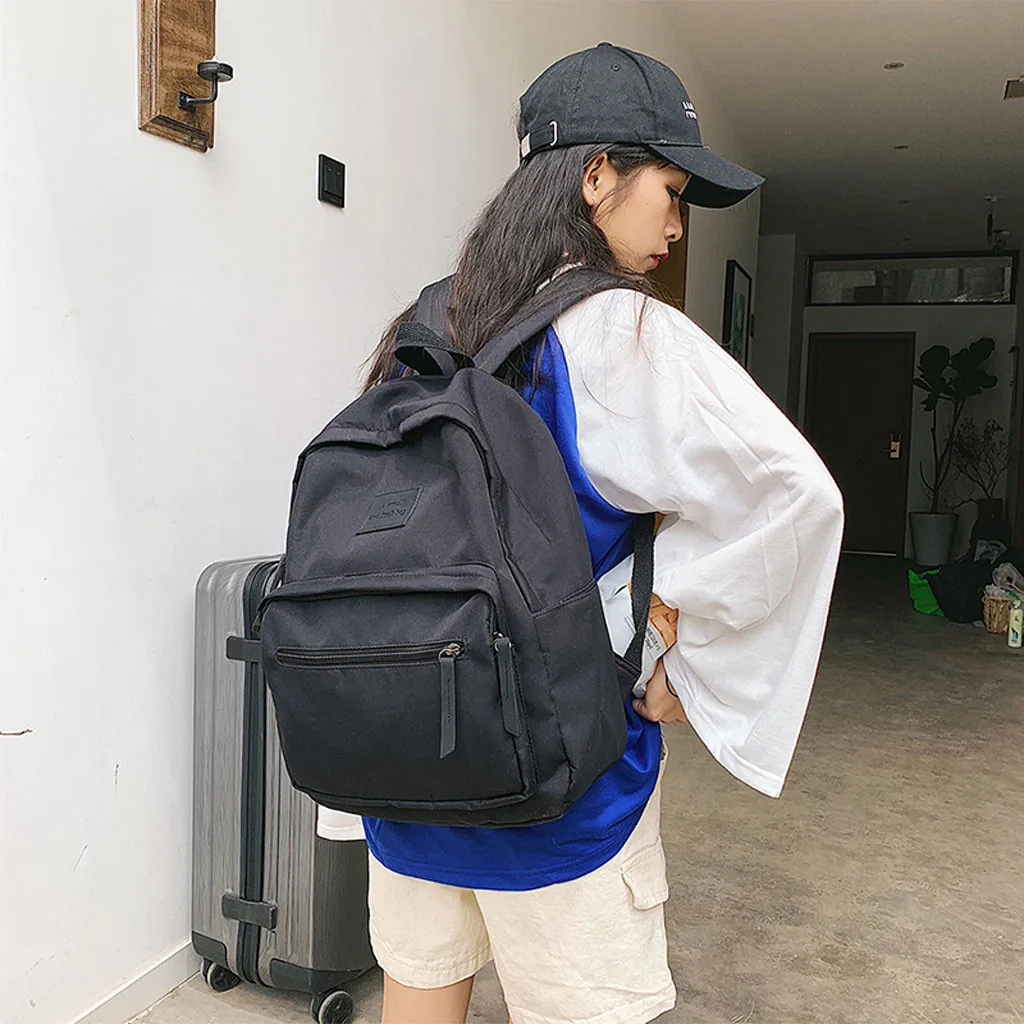 Мода для девочек большой емкости дикая молния сплошной цвет нейлон Рюкзак Студенческая сумка