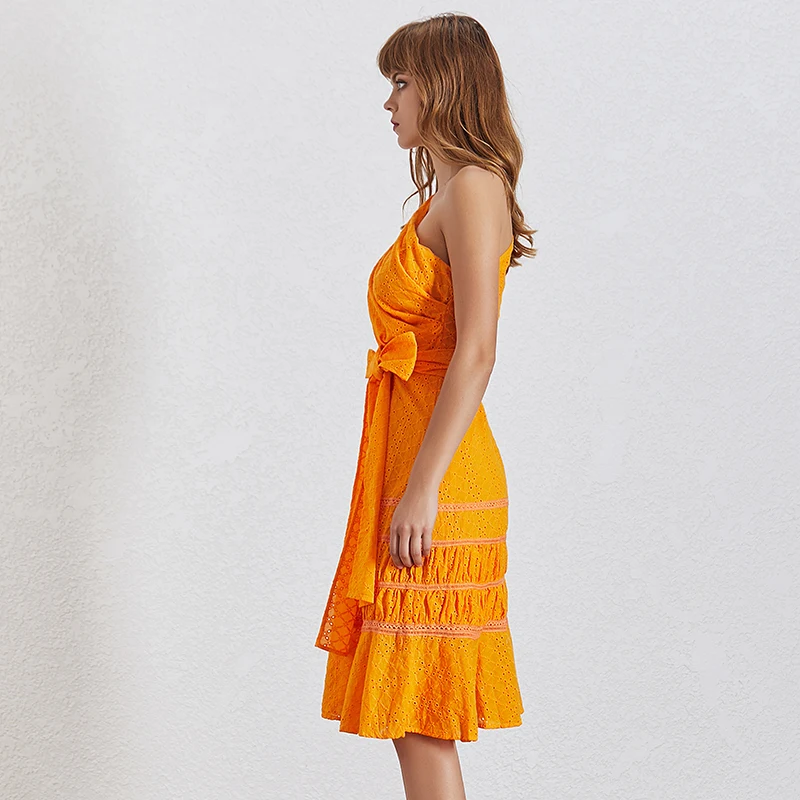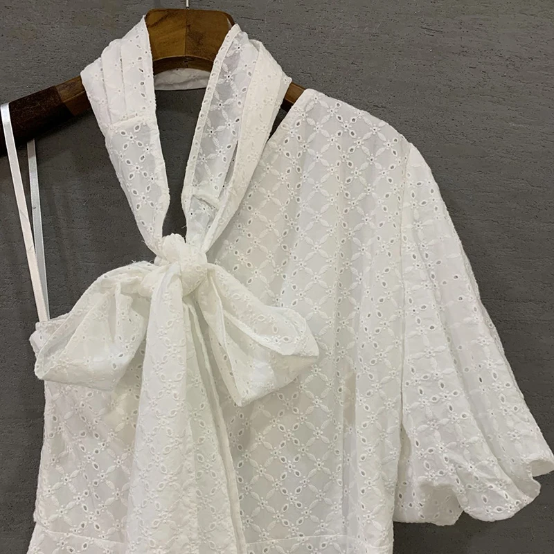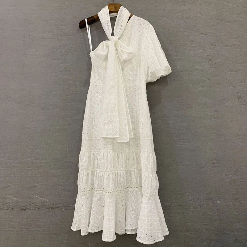Женское платье с бантом Lychee многослойное Повседневное в горошек цветочным