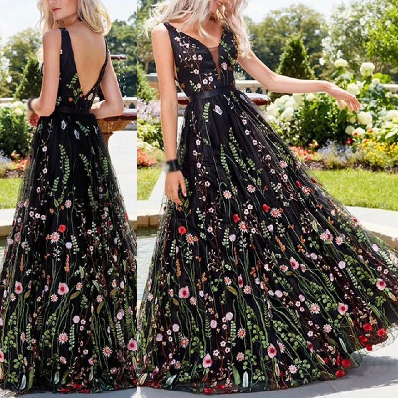 * Описание товара: Лето; глубокий v-образный вырез; Сексуальный; открытая спина; без рукавов; вышивка; длинное платье