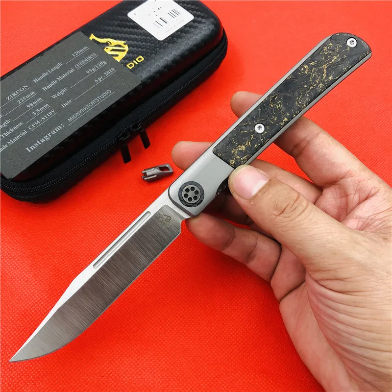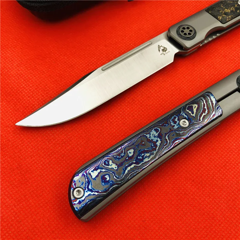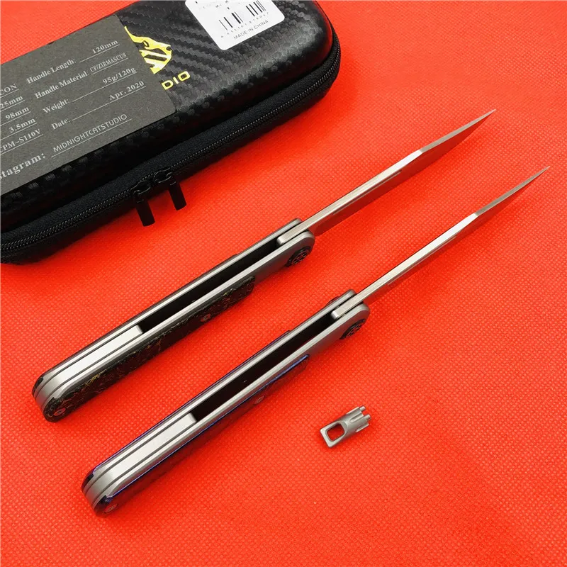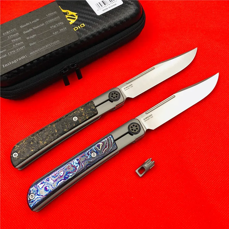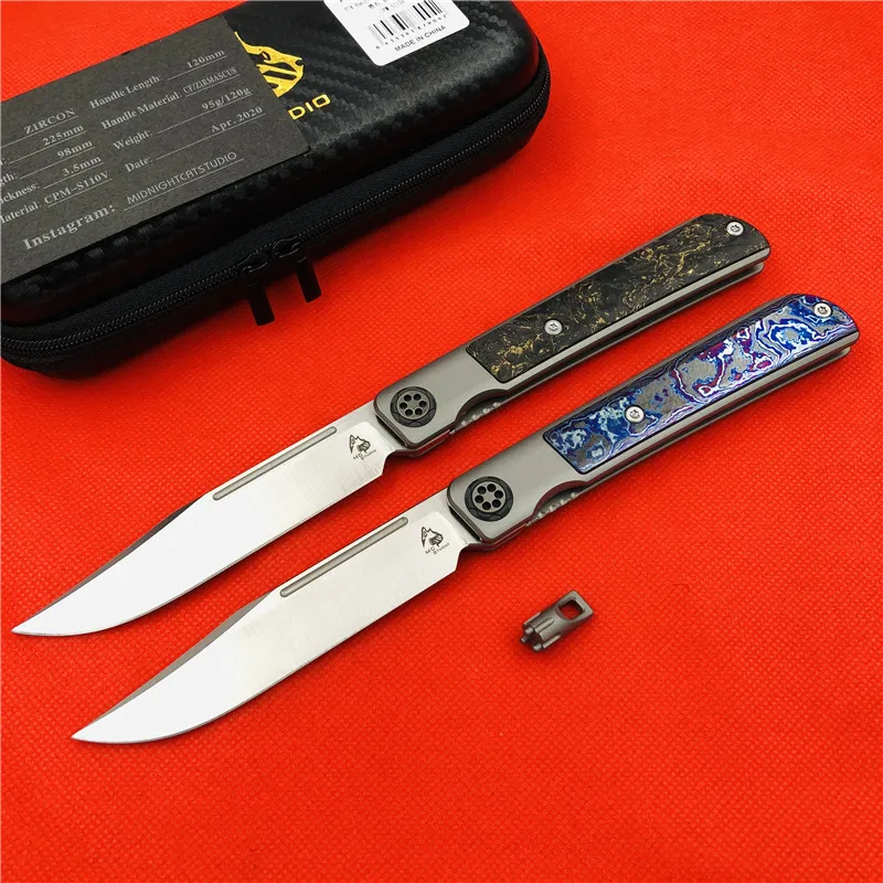 Общая длина: 225 мм Длина лезвия: 98 мм Длина ручки: 120 мм Толщина лезвия: 3,5 мм Ширина лезвия: 20 мм Обработка поверхности лезвия: ручной Атлас Система: керамический шариковый подшипник Уровень защиты: 60-62hrc Вес нетто: 120 г, 95 г Материал лезвия: cpm-s110v (100% настоящая cpm-s110v, стабильная) Материал ручки: титановый сплав + лошадь из циркона, углеродное волокно Другое: нейлоновая куртка на молнии