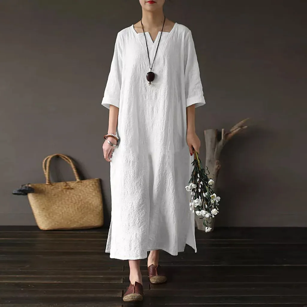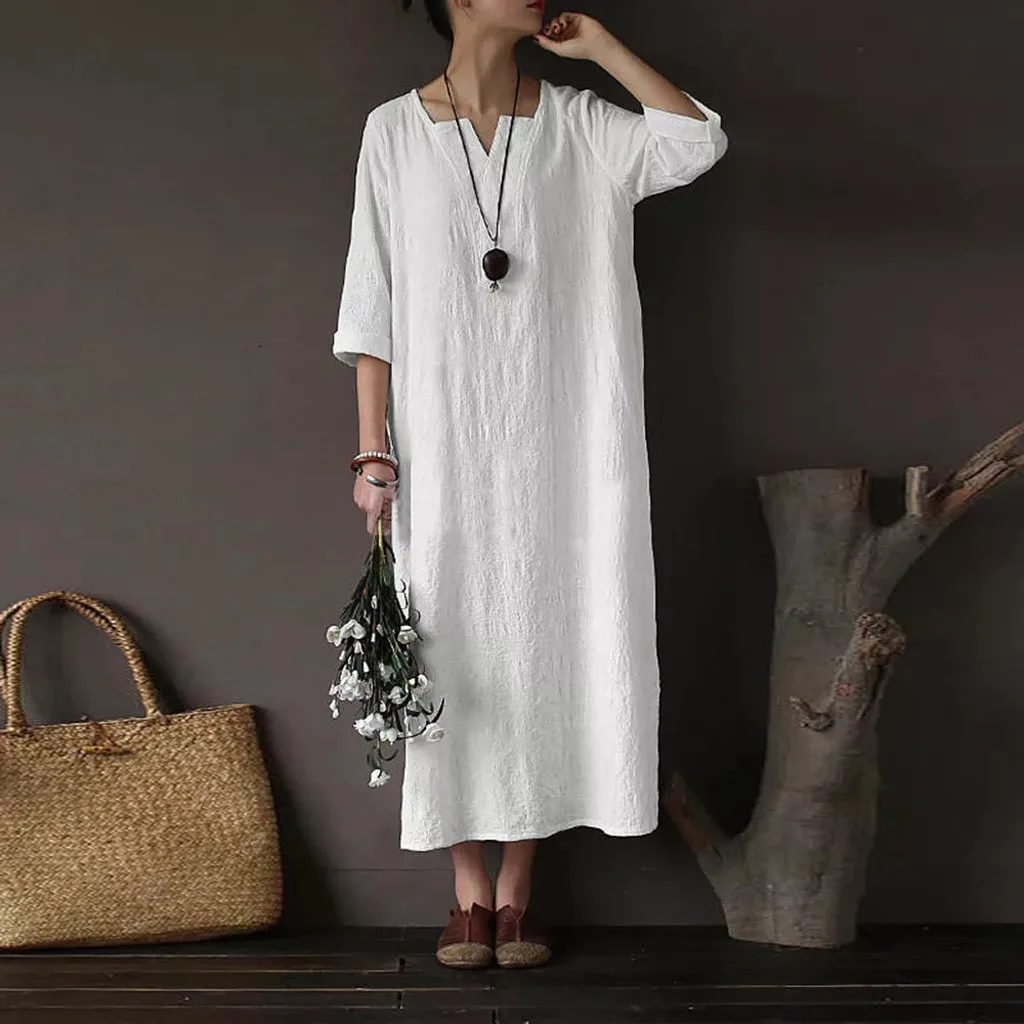 Женское летнее повседневное однотонное винтажное свободное хлопковое длинное платье макси с v-образным вырезом больших размеров