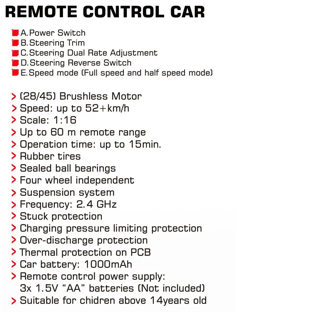 | Основная информация о товаре: | Бренд: Q903 Модель: 1/16 Скорость: 52 км/ч | Мощность системы | Esc: щетка Мотор: Бесколлекторный двигатель |