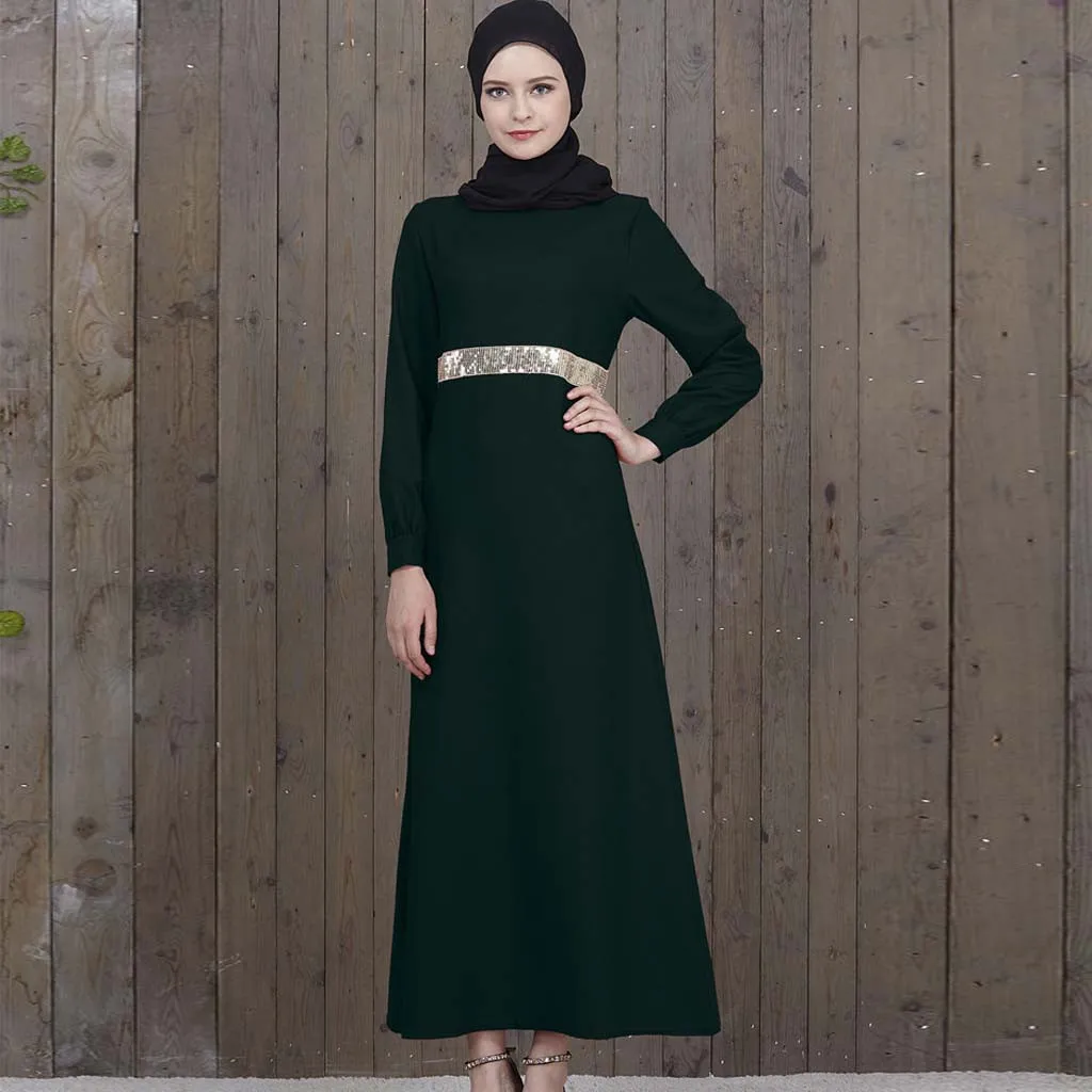 Мусульманское женское платье, мусульманское длинное платье с длинным рукавом и блестками, Абая кафтан, Арабская одежда